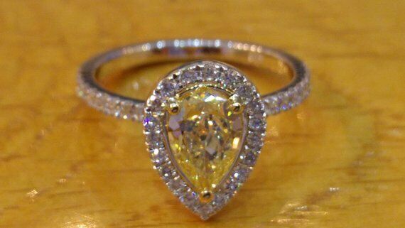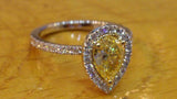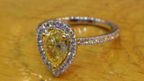 1.5ct Pear Cut Yellow Sapphire Accent Halo Engagement Ring 14k White Gold Finish
