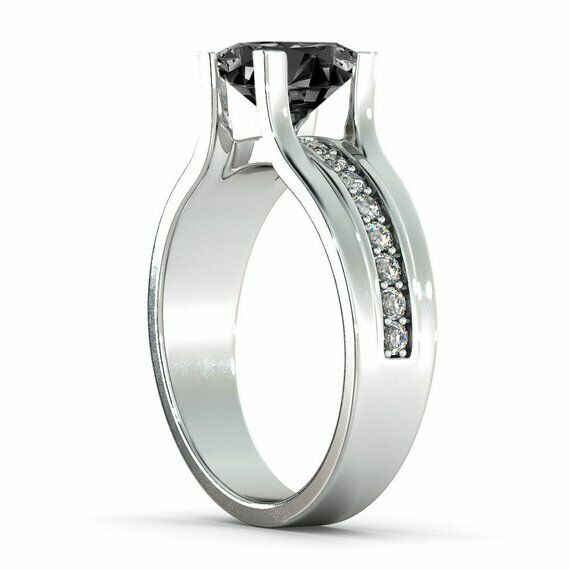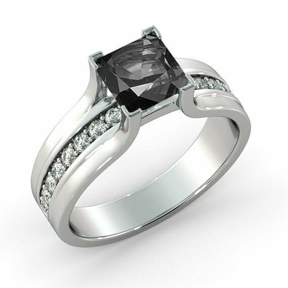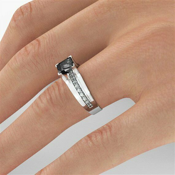 1.5ct Princess Cut Black Diamond Solitaire Engagement Ring 14k White Gold Finish