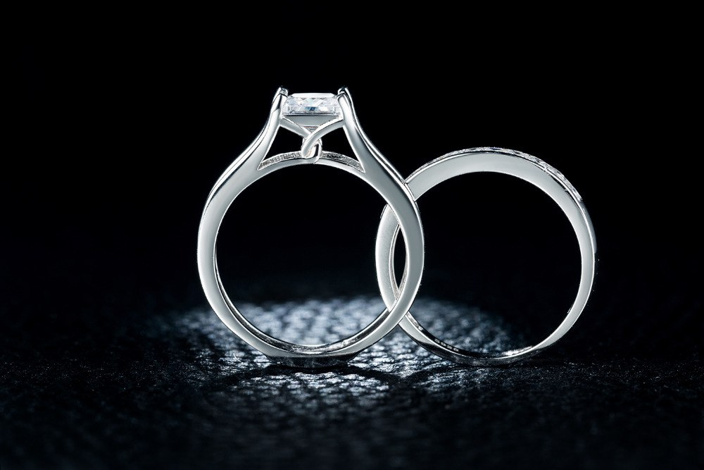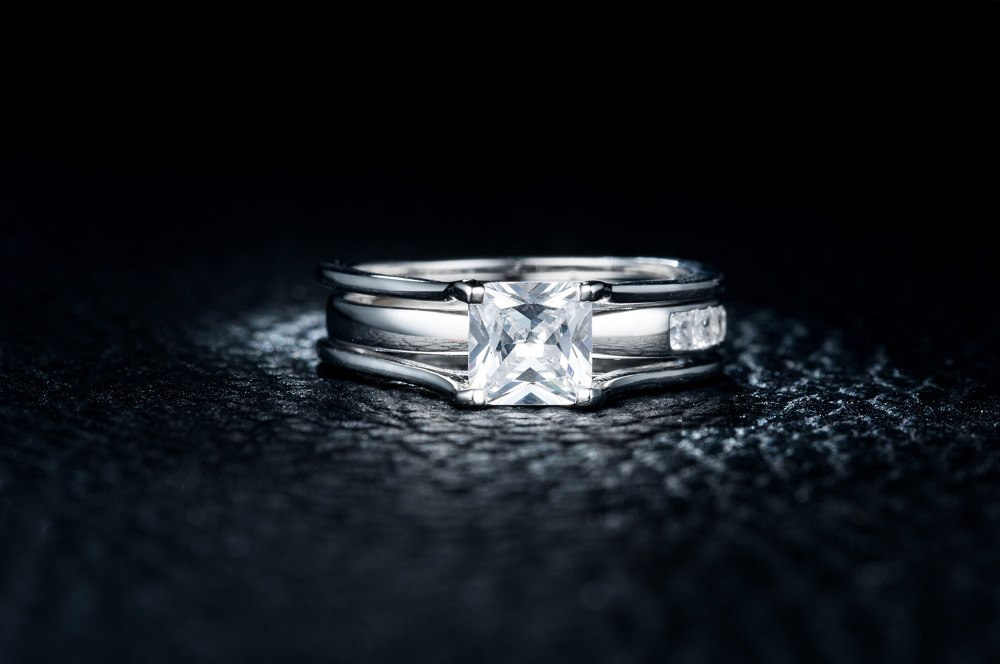 1.5ct Princess Cut Diamond Engagement Ring 14k WhiteGold Finish Bezel Bridal Set