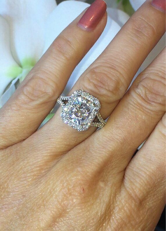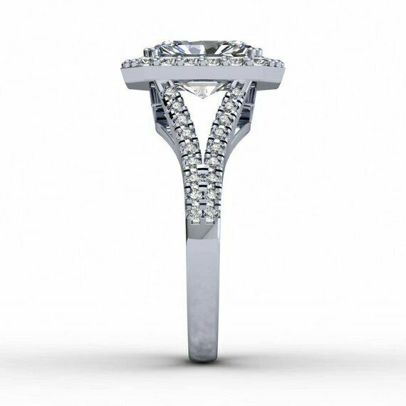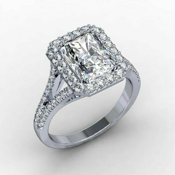 1.5ct Radiant Cut Diamond Halo Solitaire Engagement Ring 14k White Gold Finish