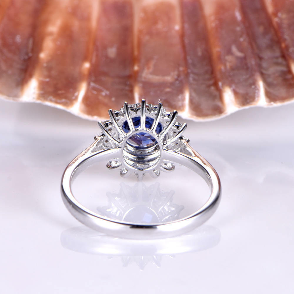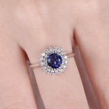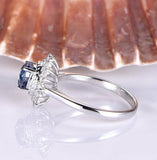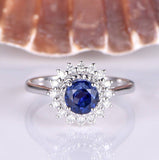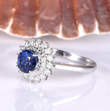 1.5ct Round Blue Sapphire Halo Vintage Floral Engagement Ring 14k WhiteGold Over