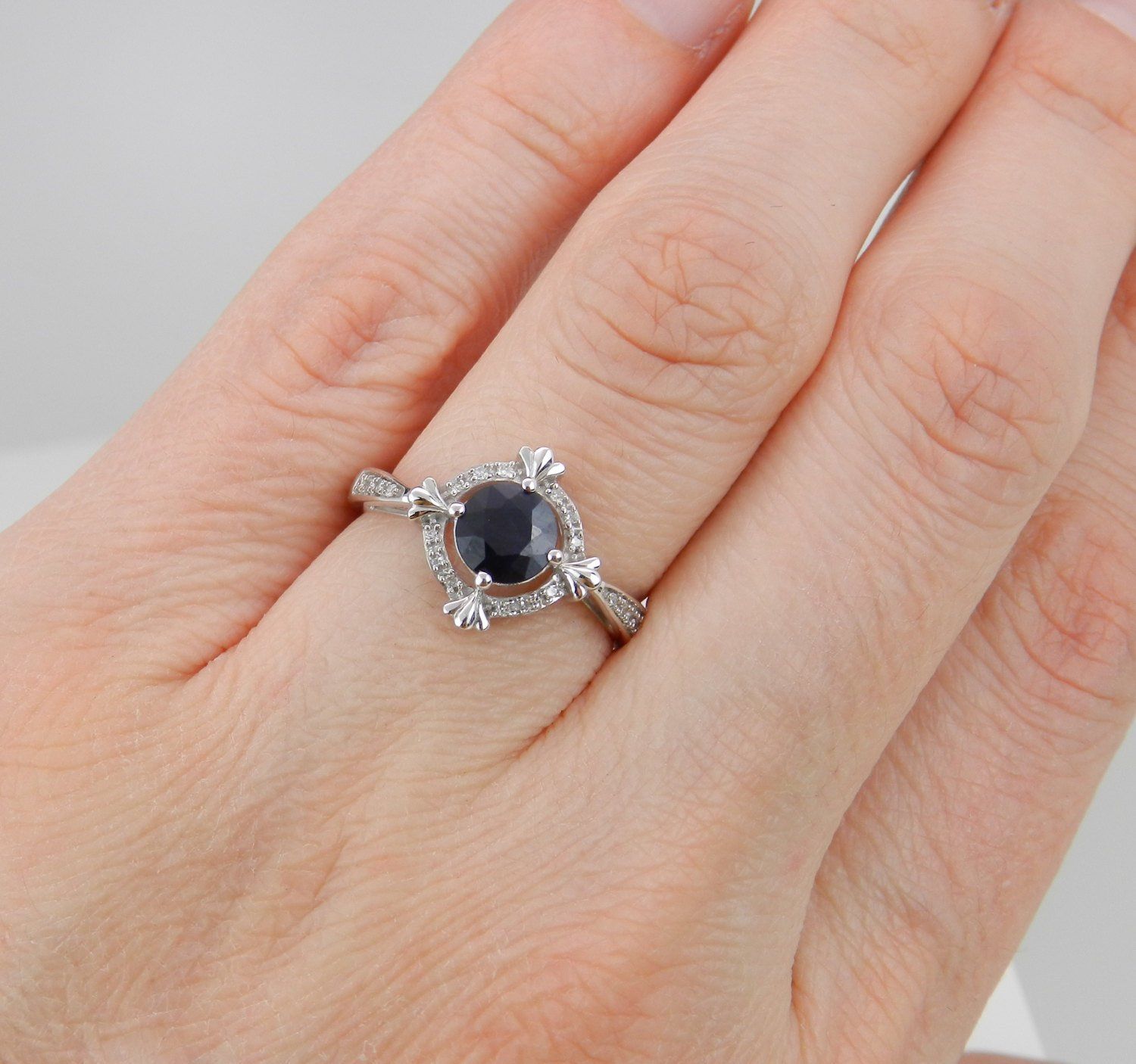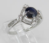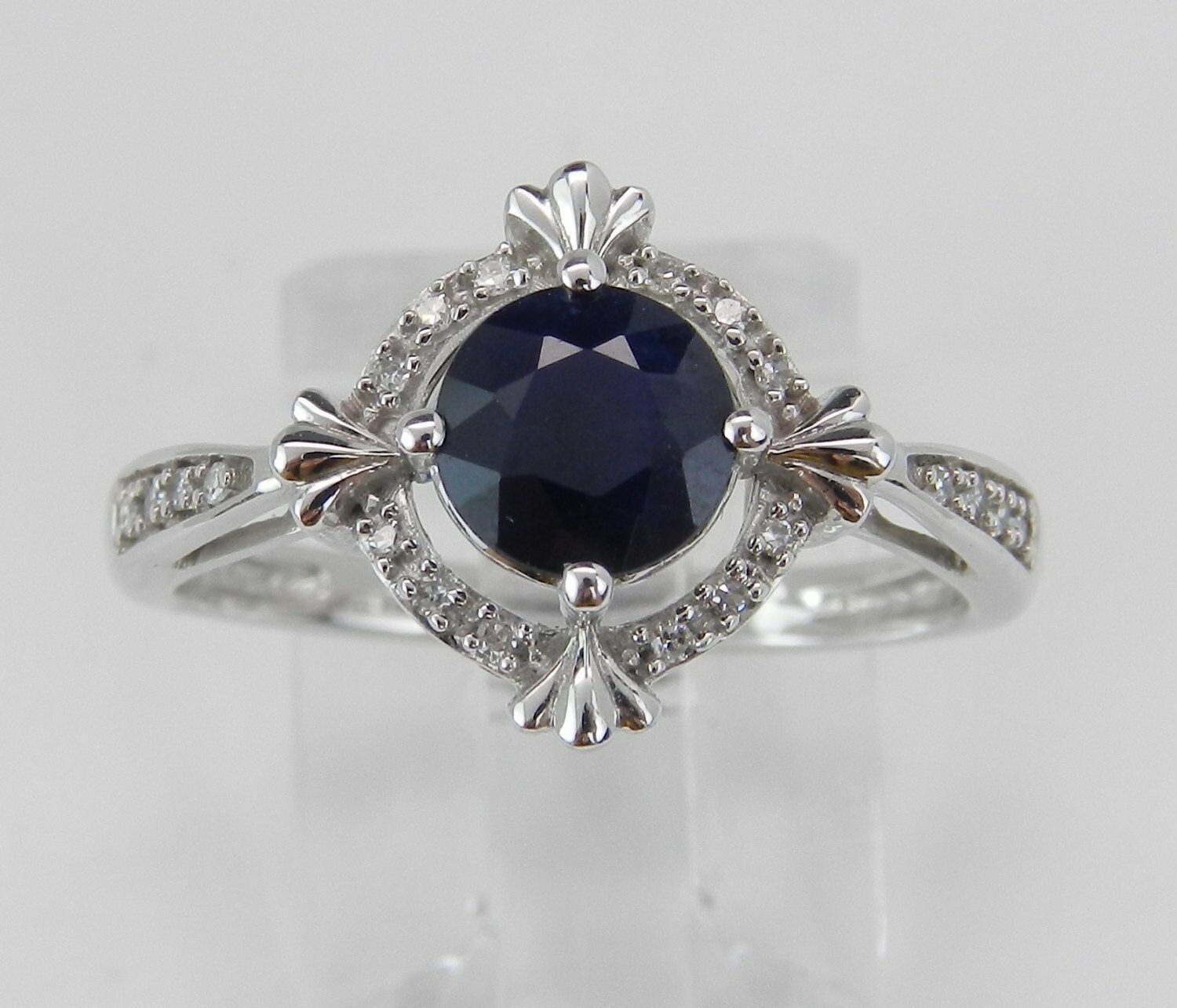 1.5ct Round Cut Blue Sapphire Halo Compass Engagement Ring 14k White Gold Finish