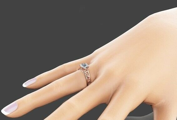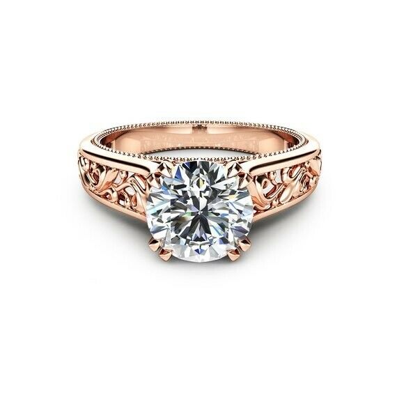 1.5ct Round Cut Diamond Engagement Ring 14k Rose Gold Finish Filigree Milgrain