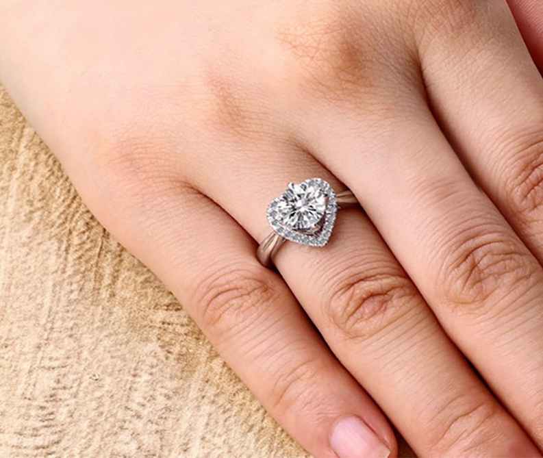 1.5ct Round Cut Diamond Engagement Ring 14k White Gold Finish Halo Heart Design