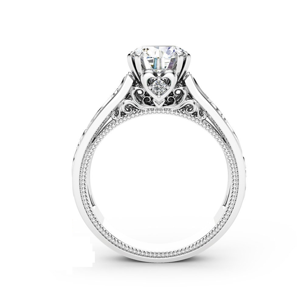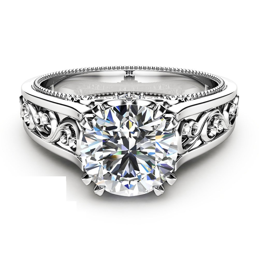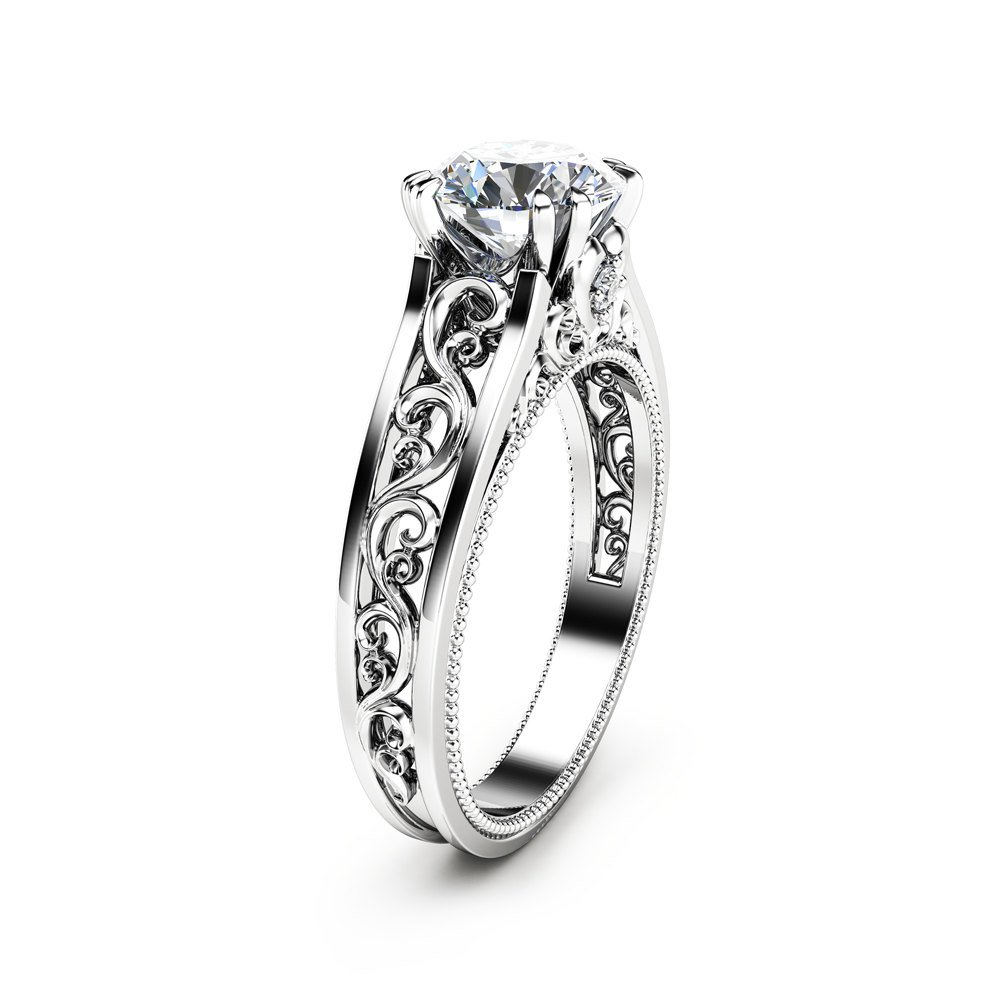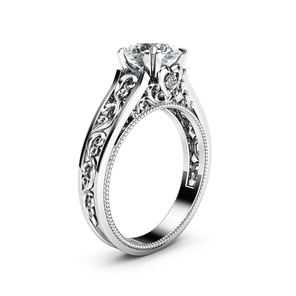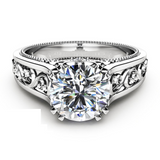 1.5ct Round Cut Diamond Engagement Ring 14k White Gold Finish Vintage Filigree