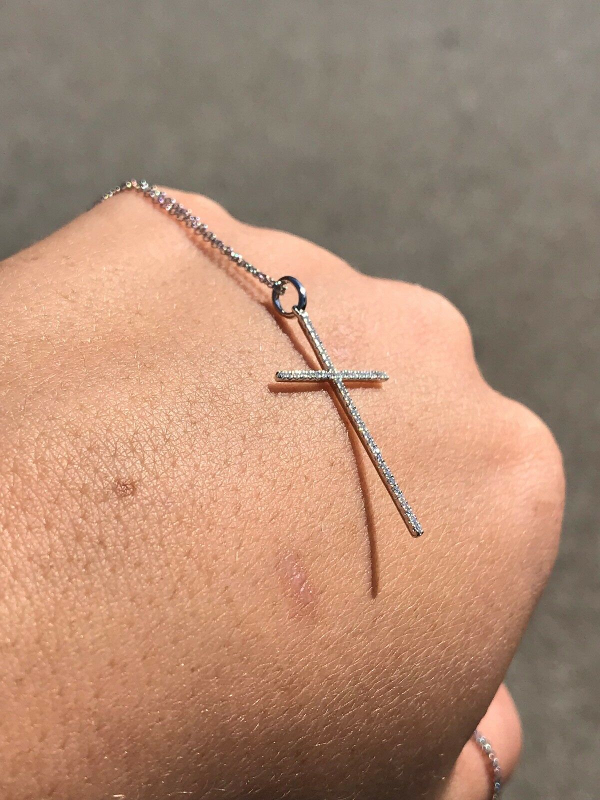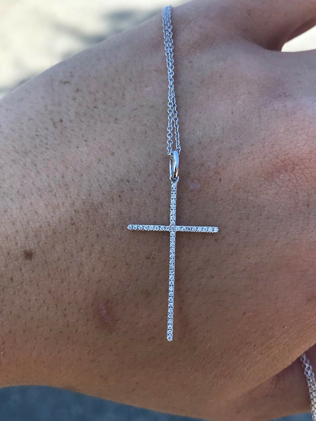 1.5ct Round Cut Diamond Holy Slim Cross Jesus Christ Pendant 14k White Gold Over