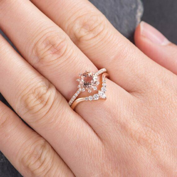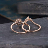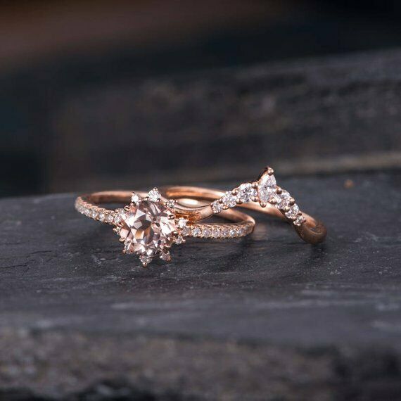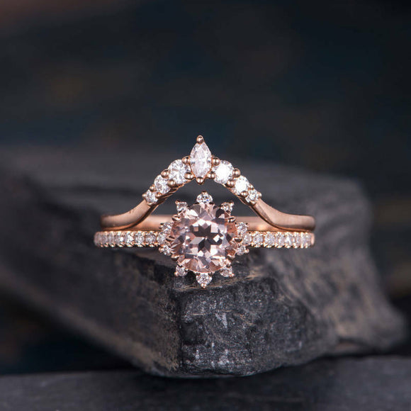 1.5ct Round Cut Peach Morganite Engagement Ring 14k Rose Gold Finish Bridal Set