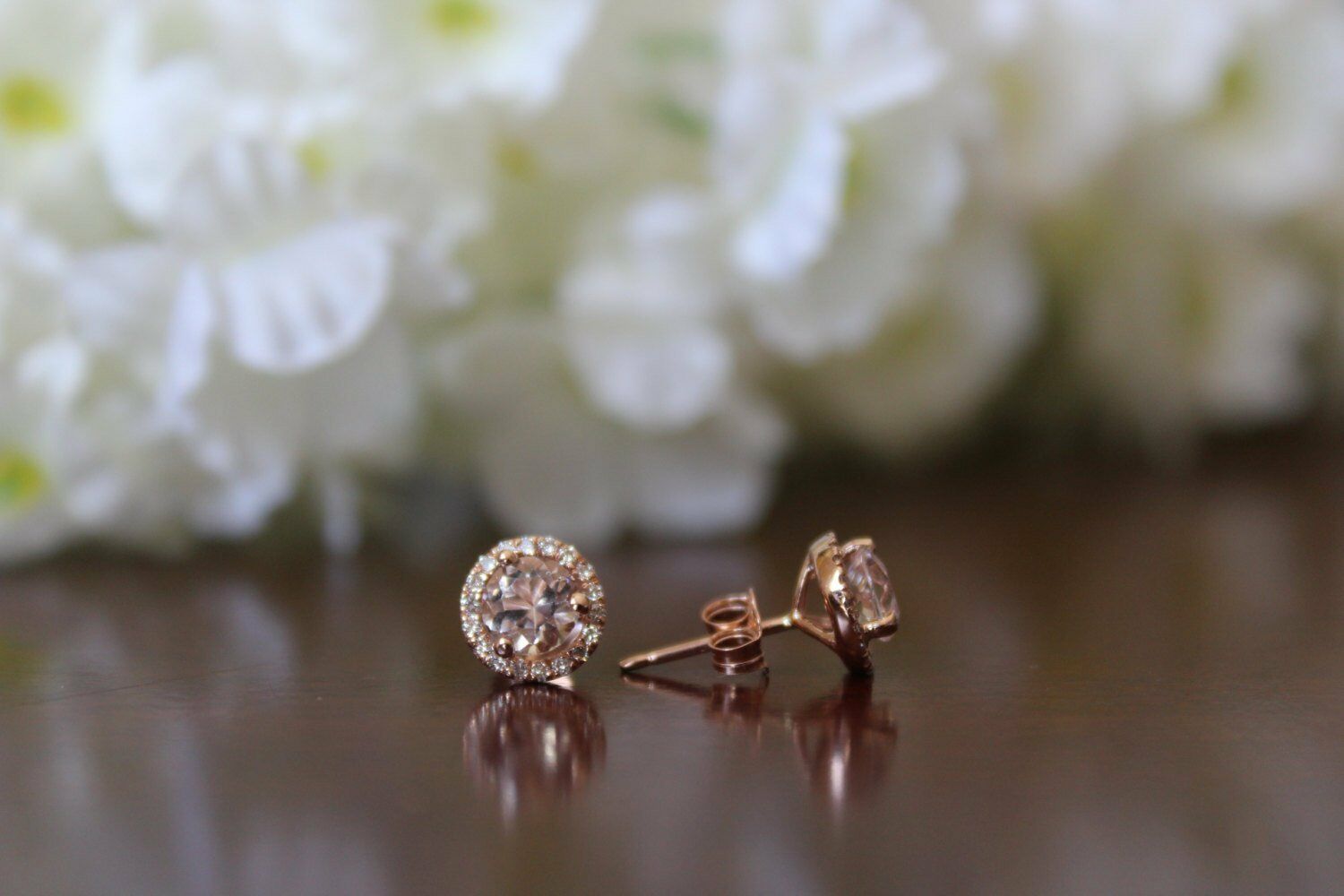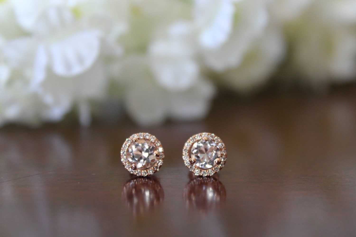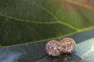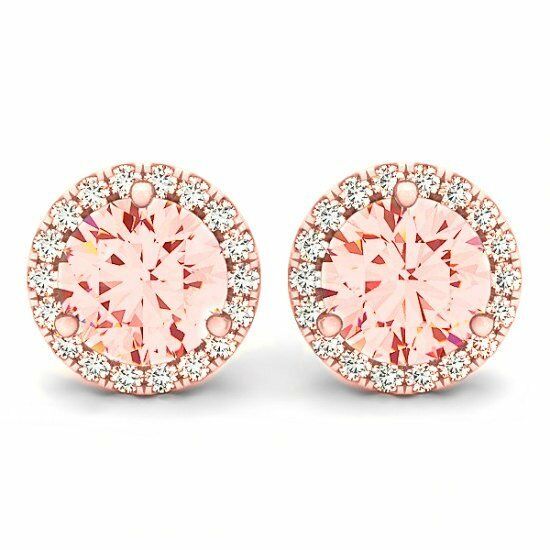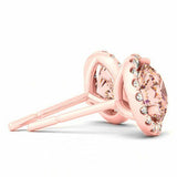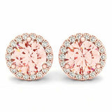 1.5ct Round Cut Peach Morganite Halo Solitaire Stud Earrings 14k Rose Gold Over