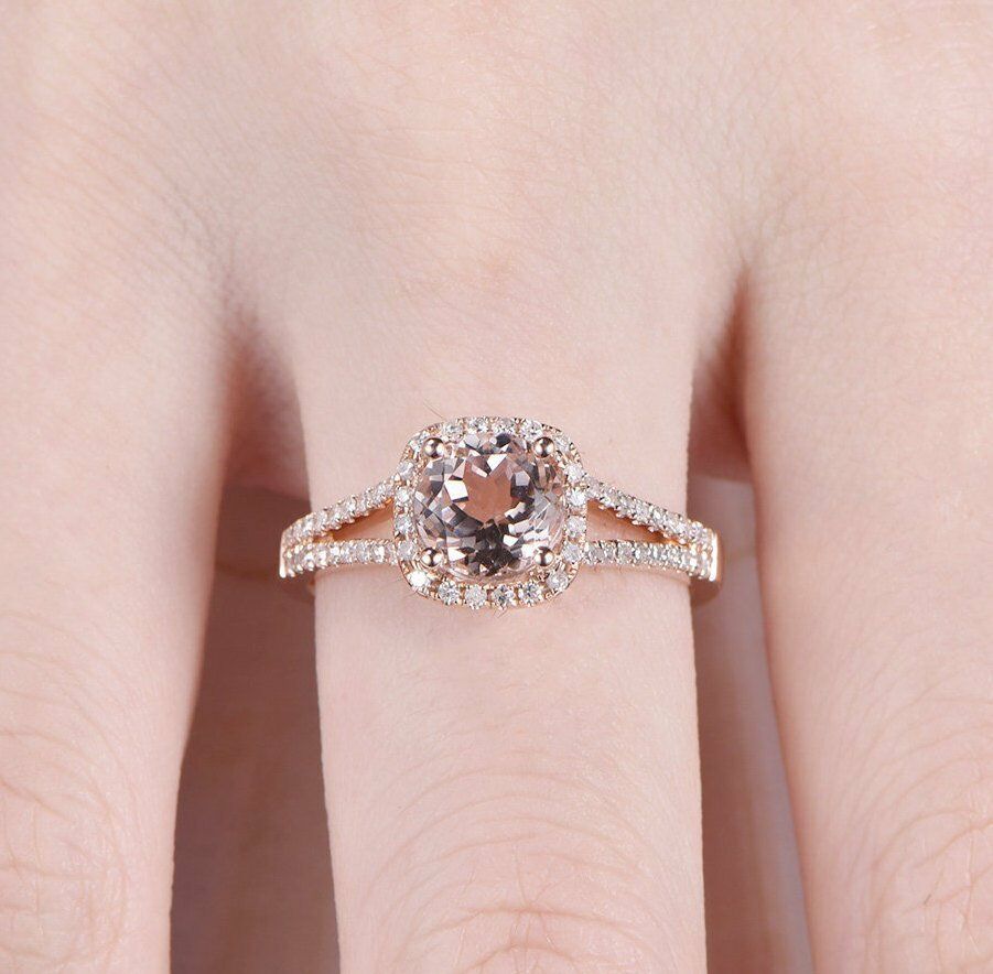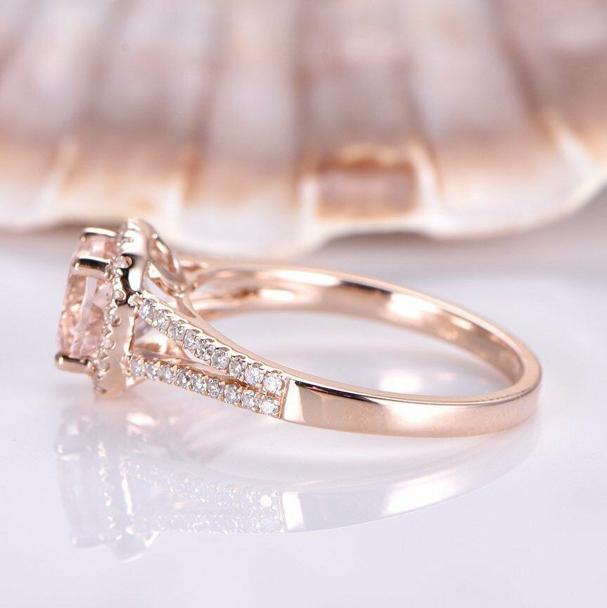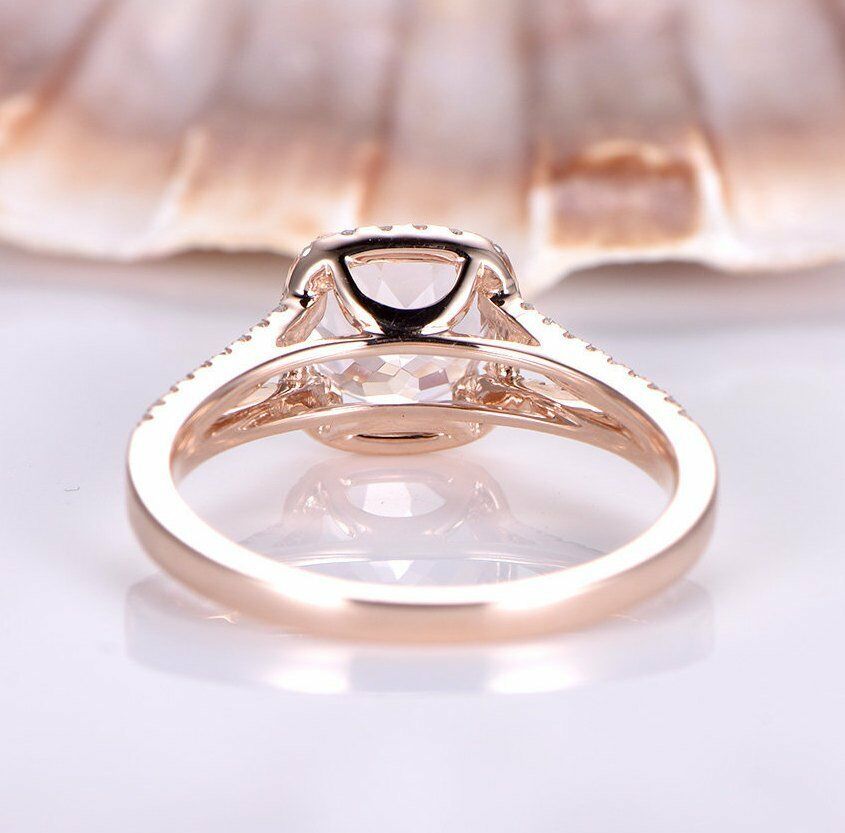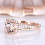 1.5ct Round Cut Peach Morganite Split Shank Engagement Ring 14k Rose Gold Finish