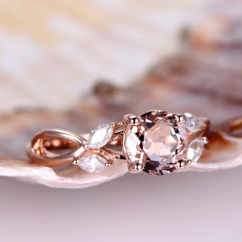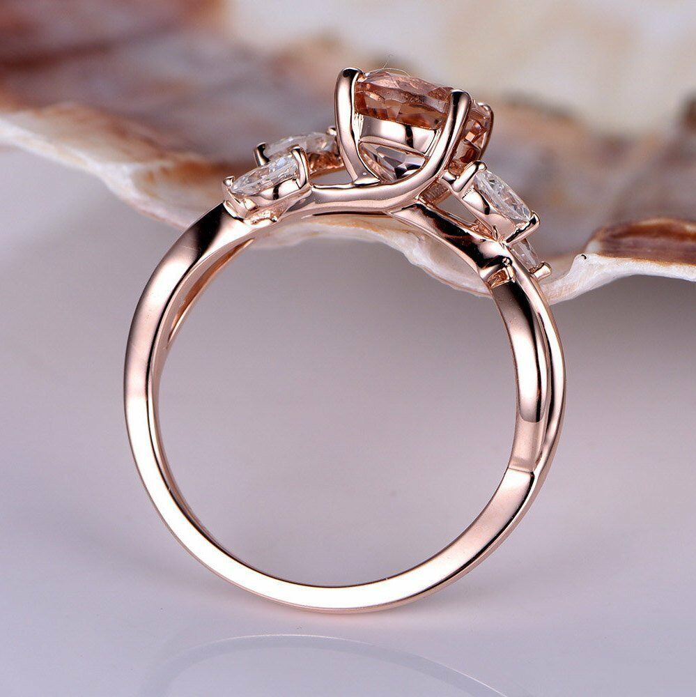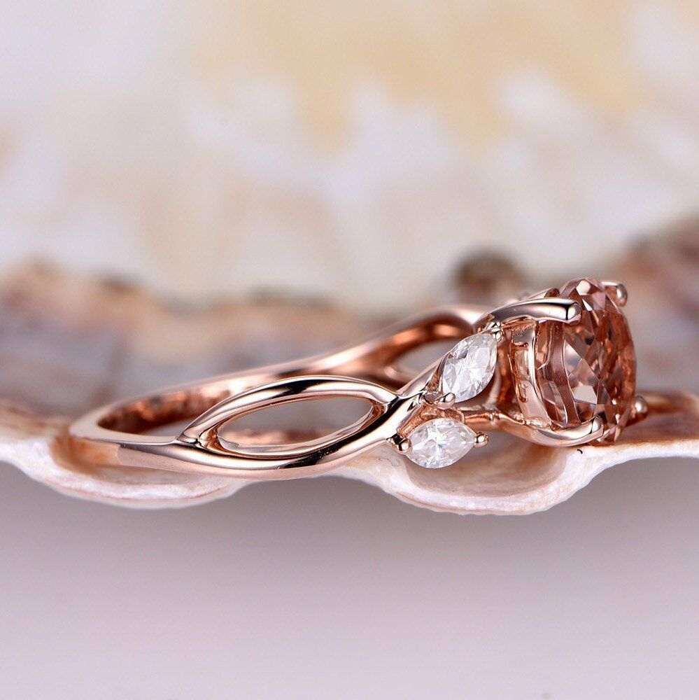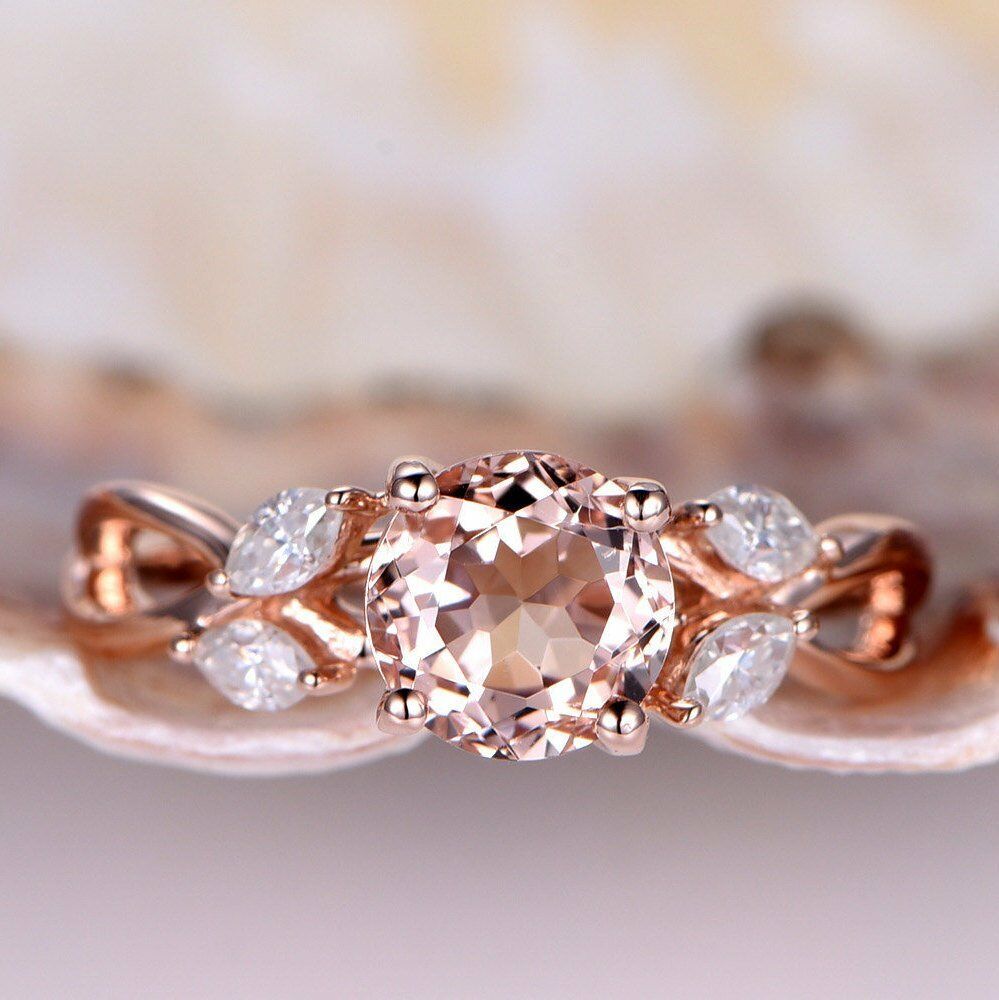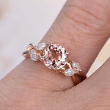 1.5ct Round Cut Peach Morganite Vintage Floral Engagement Ring 14k RoseGold Over