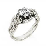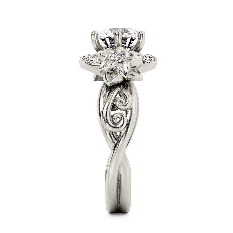 1.5ct Round Cut VVS1 Diamond Engagement Ring 14k White Gold Finish Unique Flower