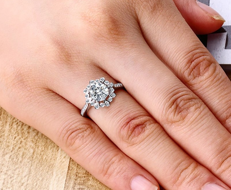 1.5ct Round Cut VVS1D Diamond Engagement Ring 14k White Gold Finish Flower Style