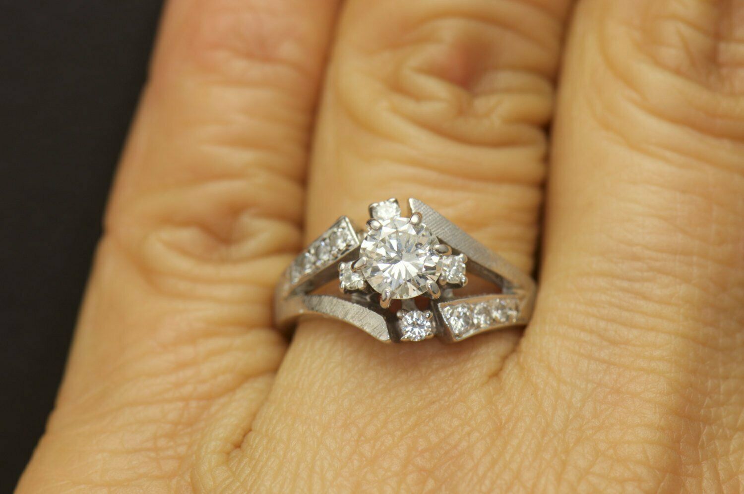 1.5ct Round Cut VVS1D Diamond Engagement Ring 14k White Gold Finish Split Shank