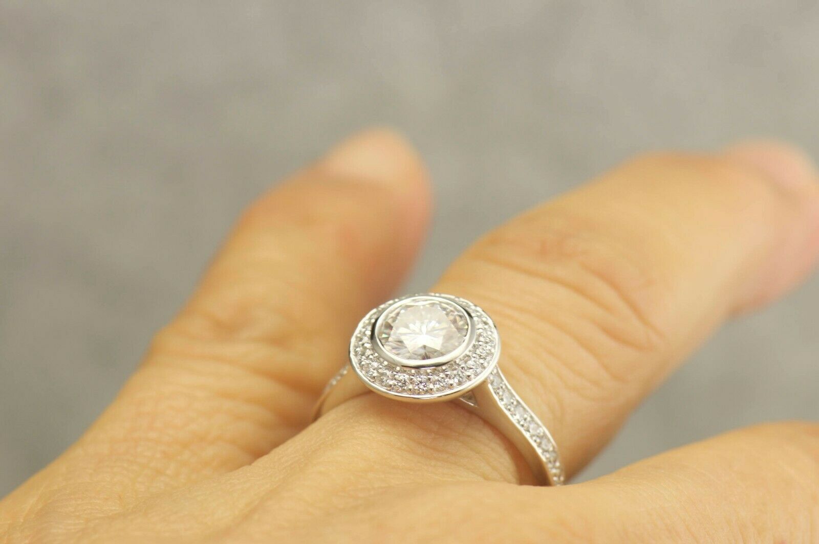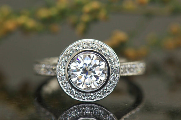 1.5ct Round Cut VVS1D Diamond Engagement Ring 14k White Gold Over Halo Solitaire