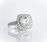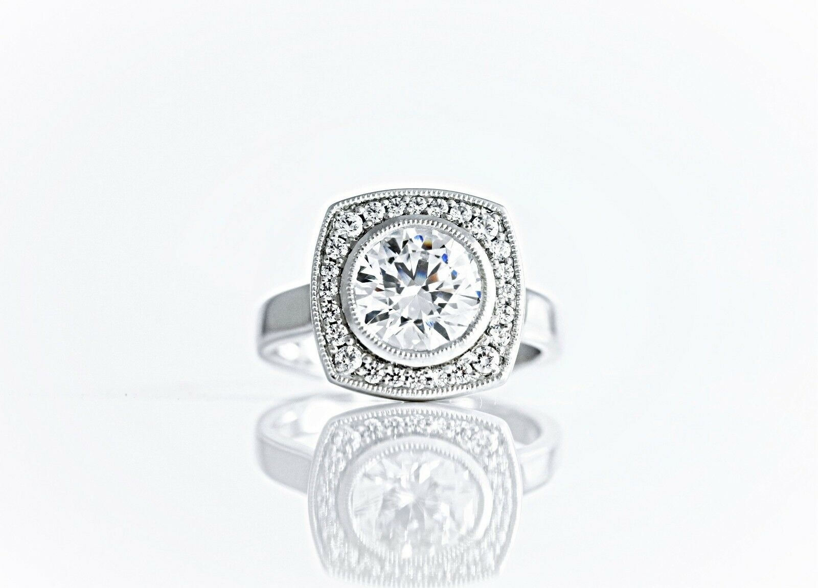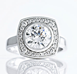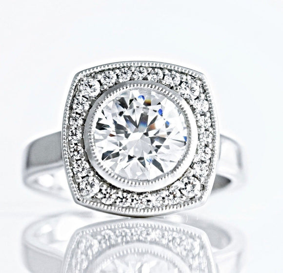 1.5ct Round Diamond Halo Milgrain Solitaire Engagement Ring 14k White Gold Over