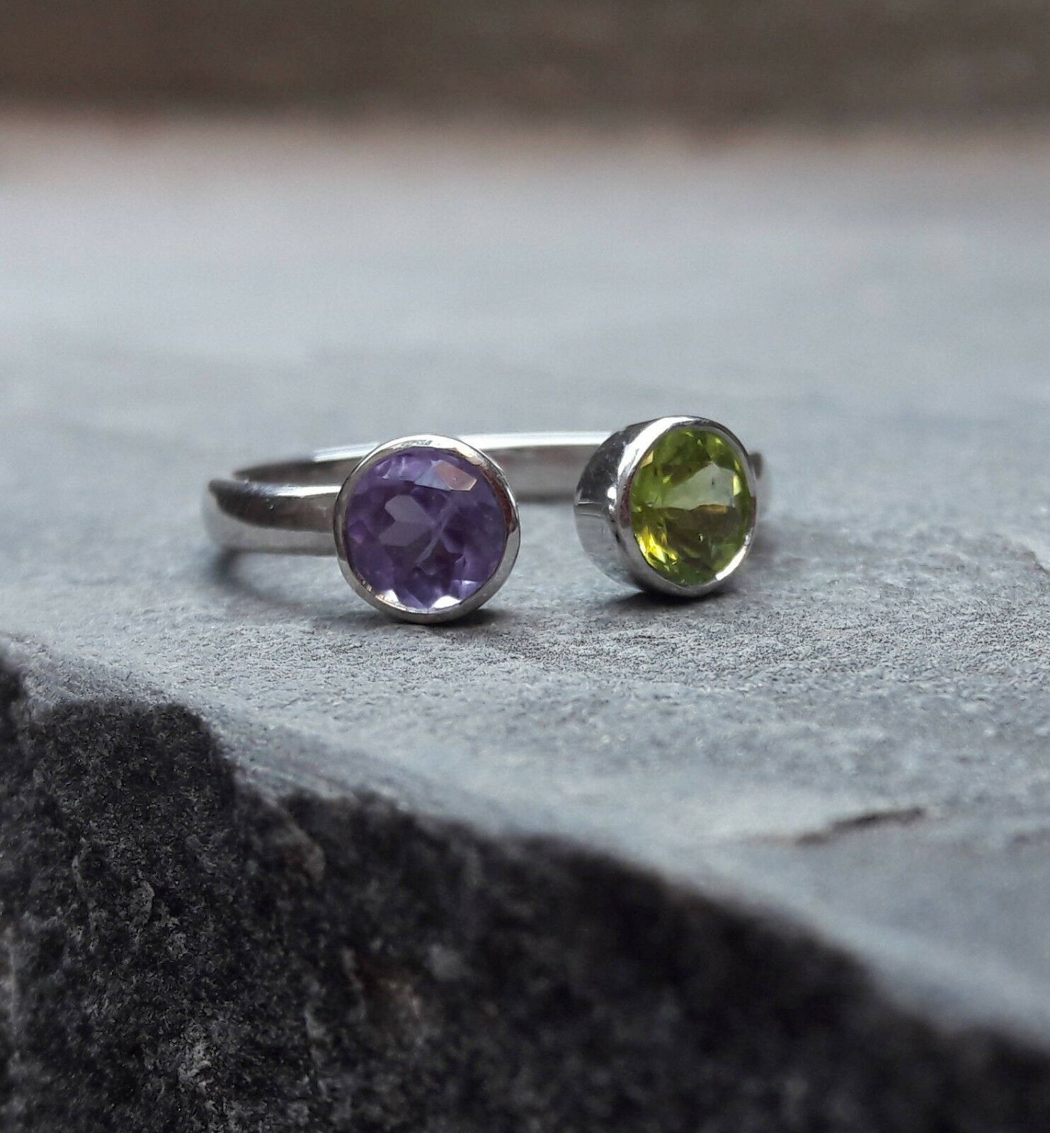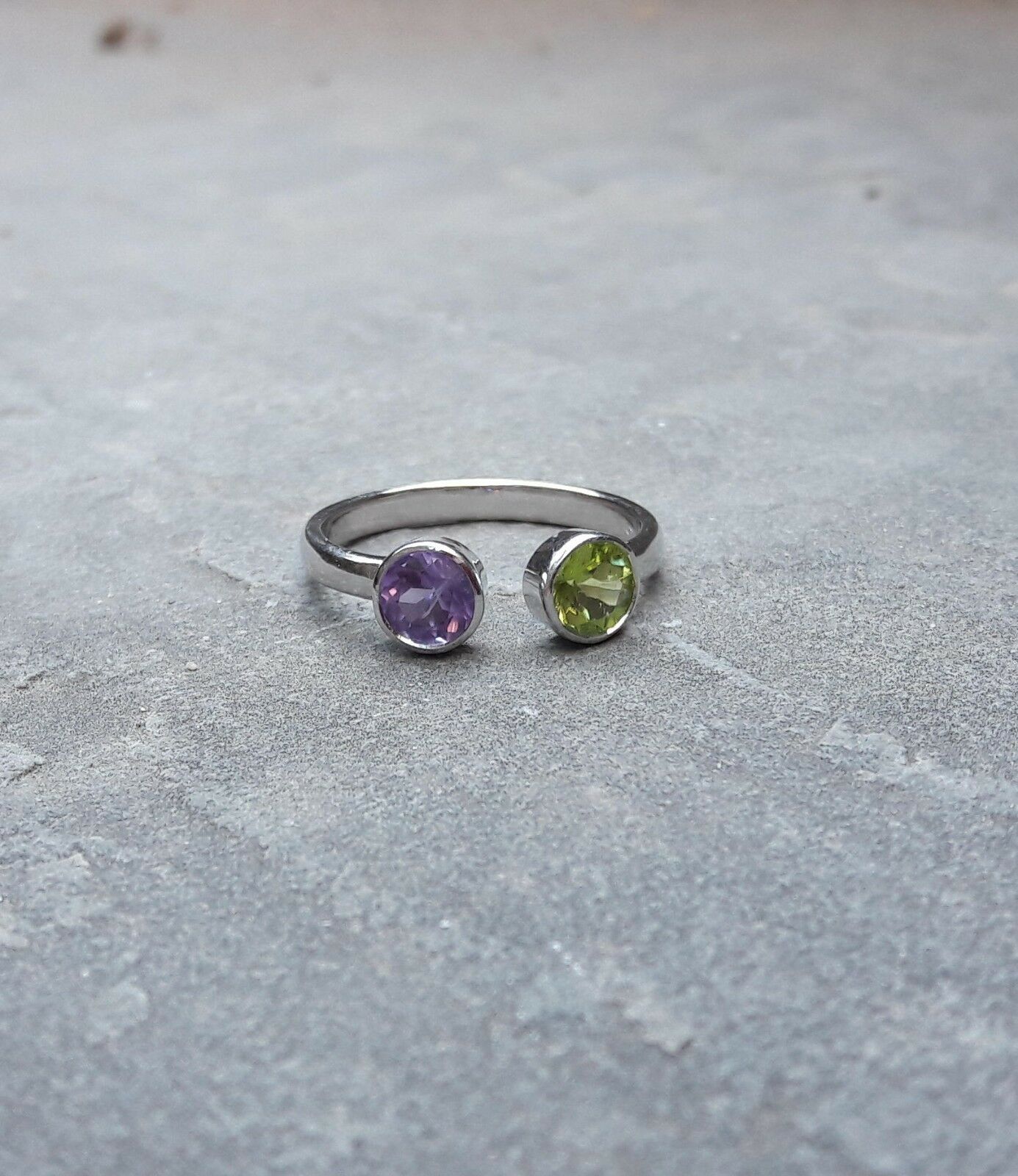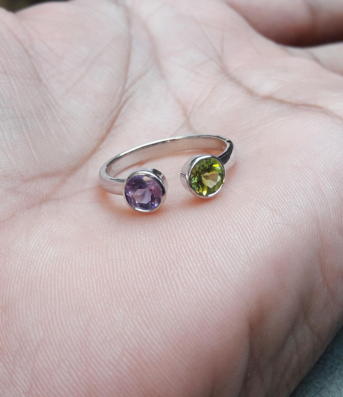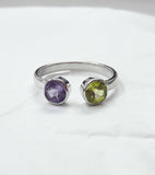 1.5ct Round Peridot Amethyst Open Fashion Engagement Ring 14k White Gold Finish
