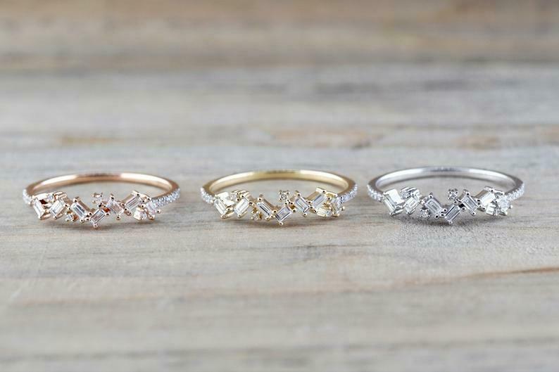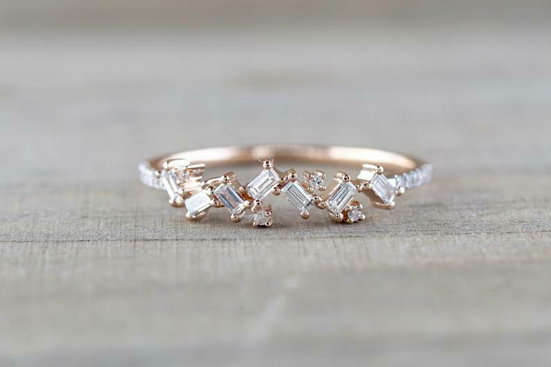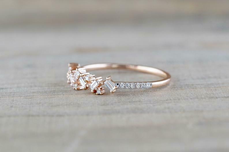 1.6ct Baguette Cut Diamond Cluster Minimalist Engagement Ring 14k Rose Gold Over
