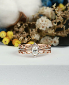 1.6ct Oval Cut Diamond Engagement Ring 14k RoseGold Finish Fancy Unique Trio Set