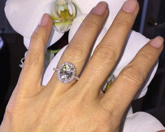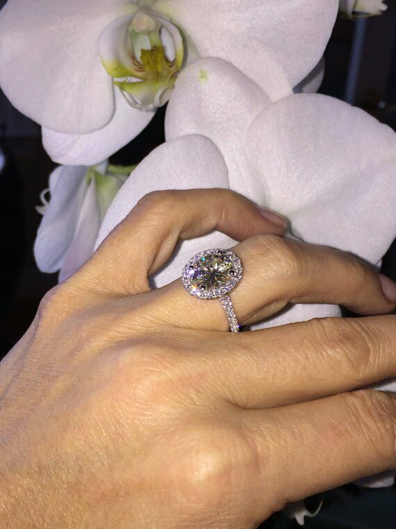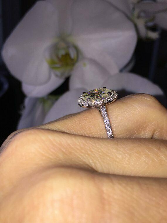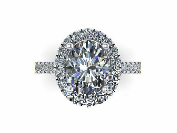 1.6ct Oval Cut Diamond Halo Solitaire Engagement Ring 14k White Gold Finish New