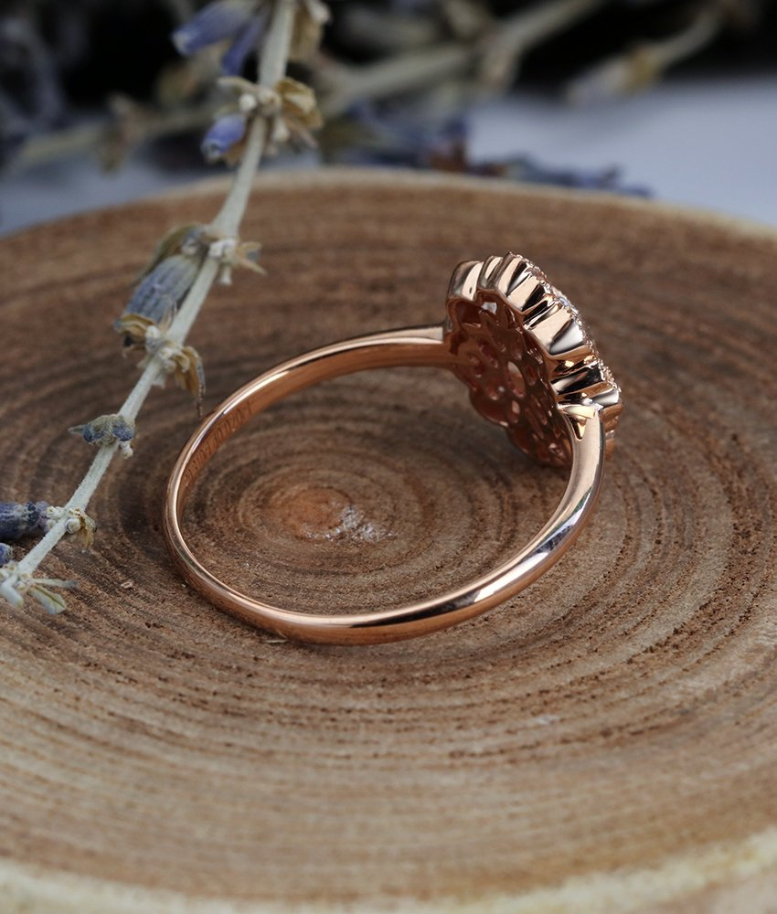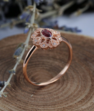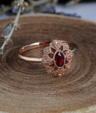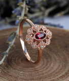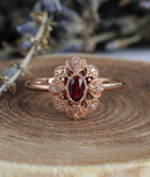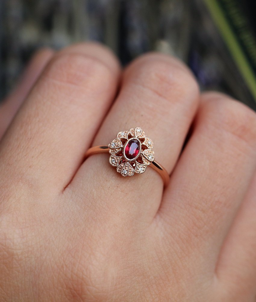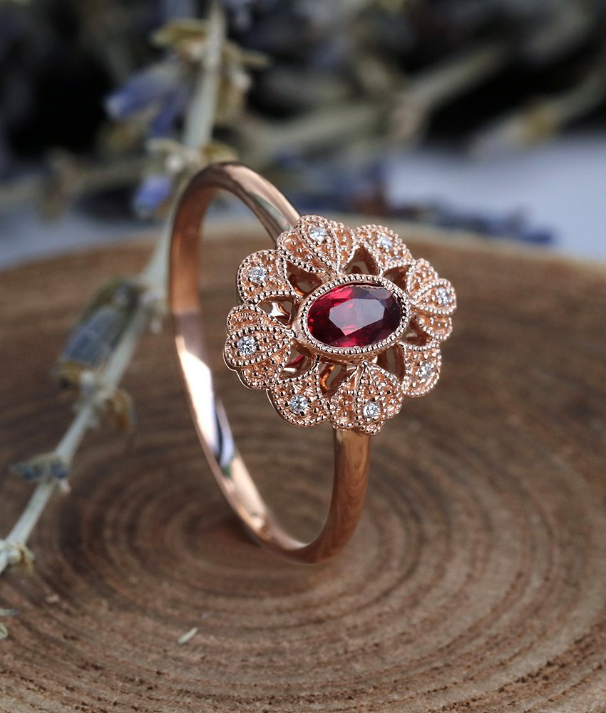 1.6ct Oval Cut Red Garnet Engagement Ring 14k Rose Gold Finish Vintage Milgrain