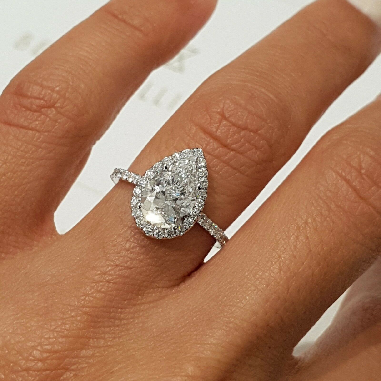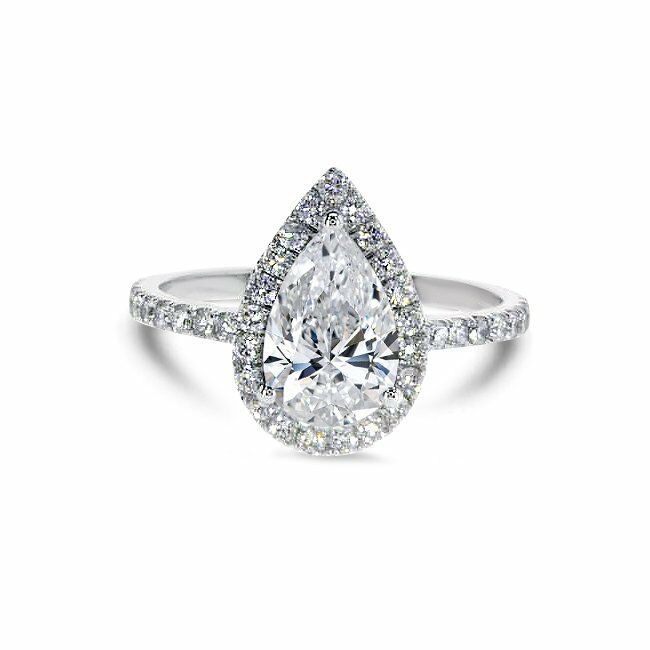 1.6ct Pear Cut Diamond Halo Solitaire Engagement Ring 18k White Gold Finish