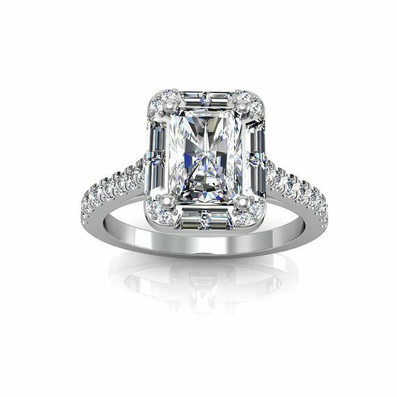 1.6ct Radiant Cut Diamond Accent Solitaire Engagement Ring 18k White Gold Finish