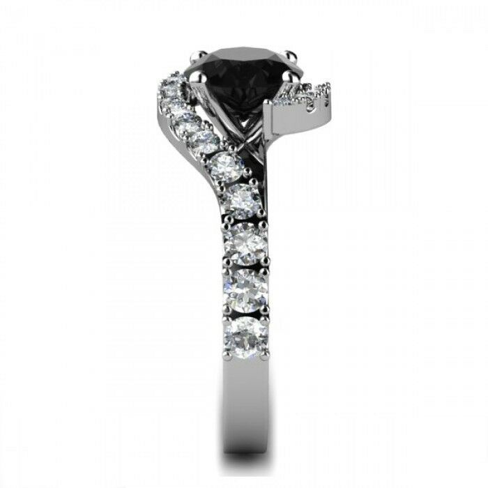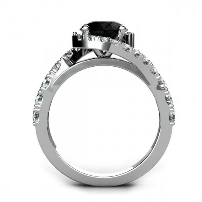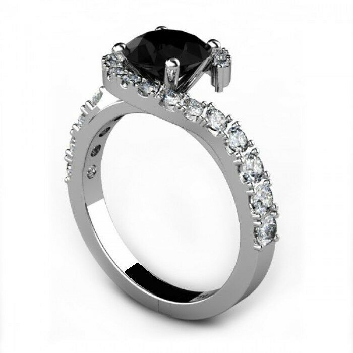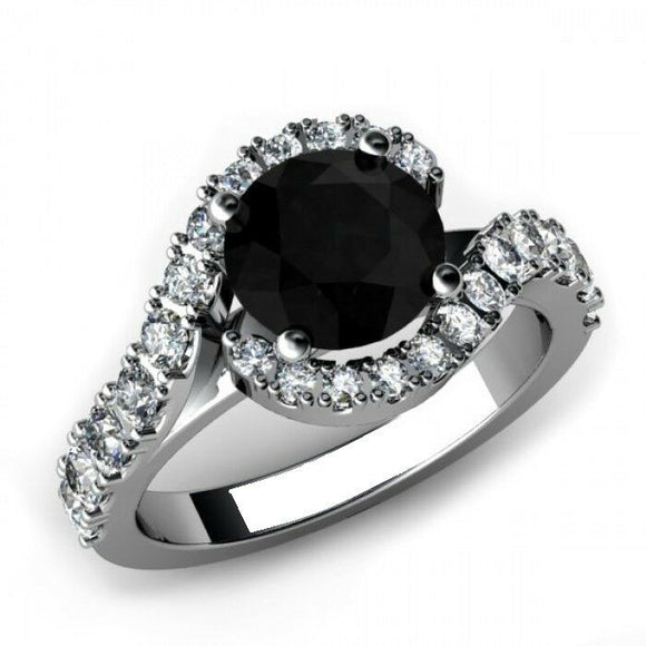 1.6ct Round Cut Black Diamond Solitaire Engagement Ring 14k White Gold Finish