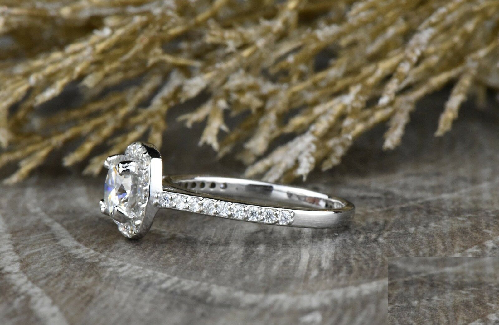 1.6ct Round Cut Diamond Engagement Ring 14k White Gold Over Halo Solitaire Women