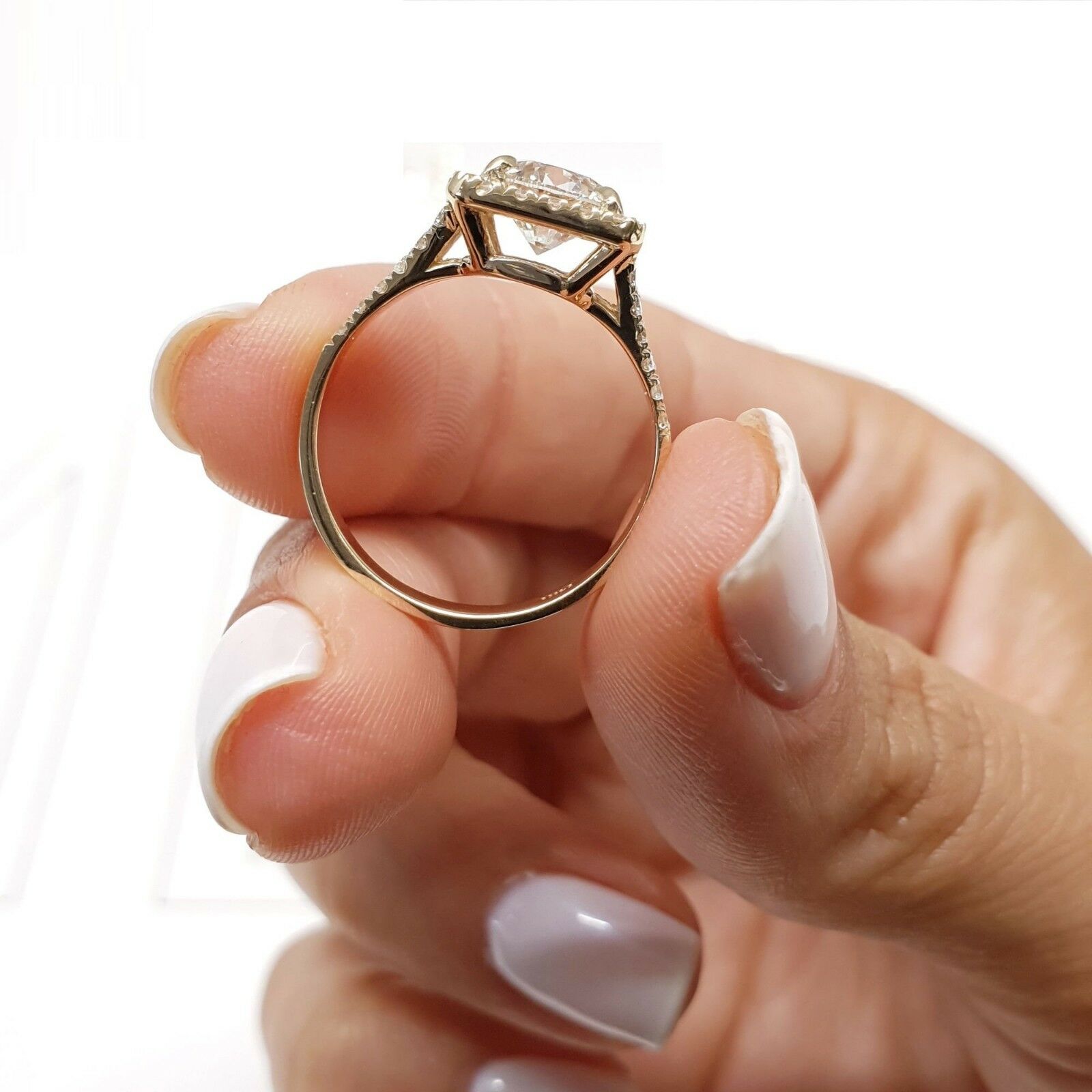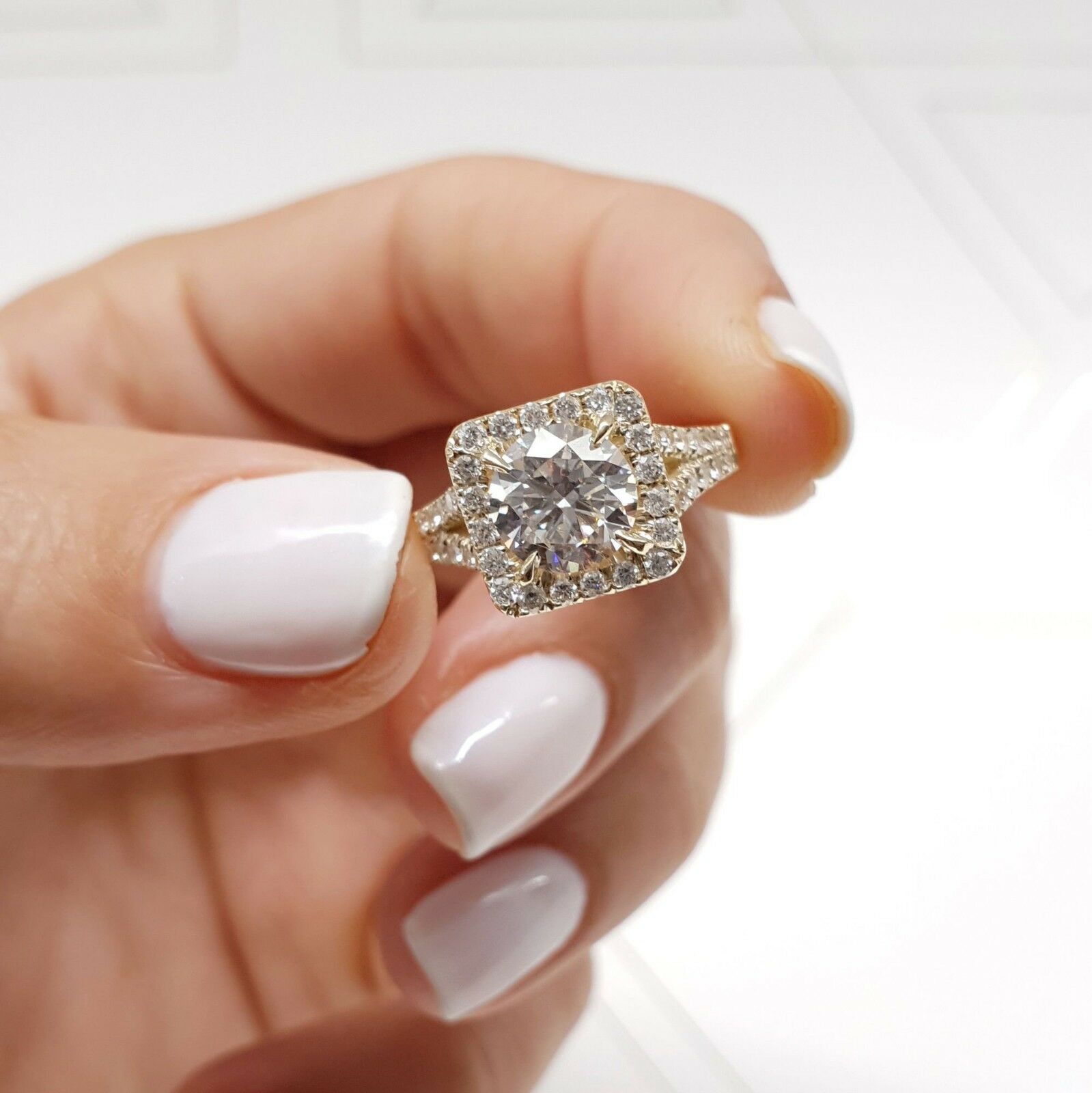1.6ct Round Cut Diamond Split Band Halo Engagement Ring 14k Yellow Gold Finish