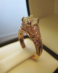 1.7ct Cushion Cut Diamond Solitaire Vintage Engagement Ring 14k Rose Gold Finish