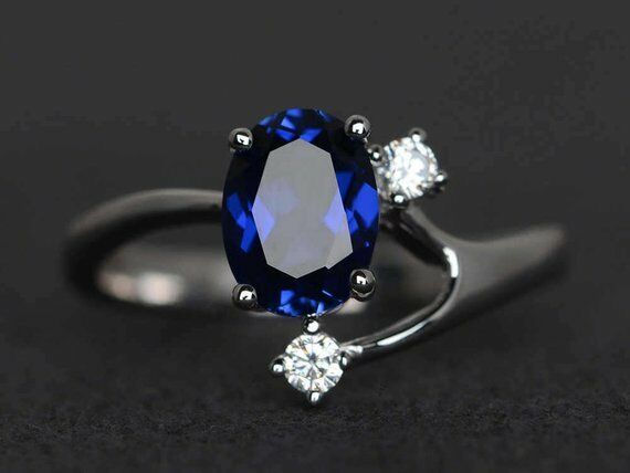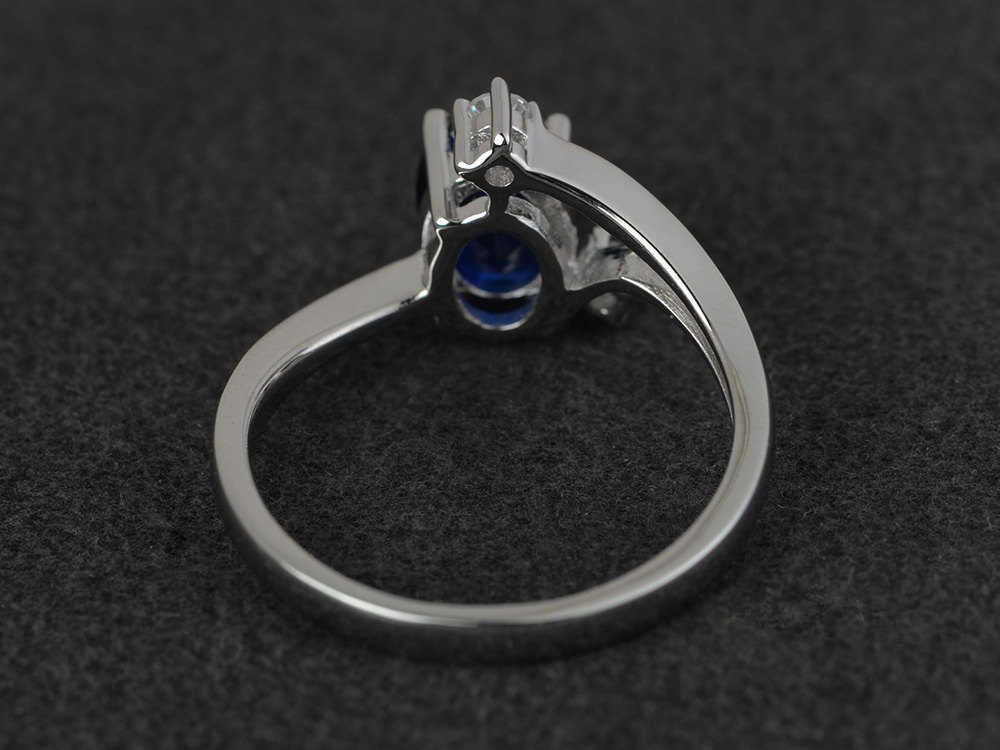 1.7ct Oval Cut Blue Sapphire Engagement Ring 14k WhiteGold Finish Unique Trilogy