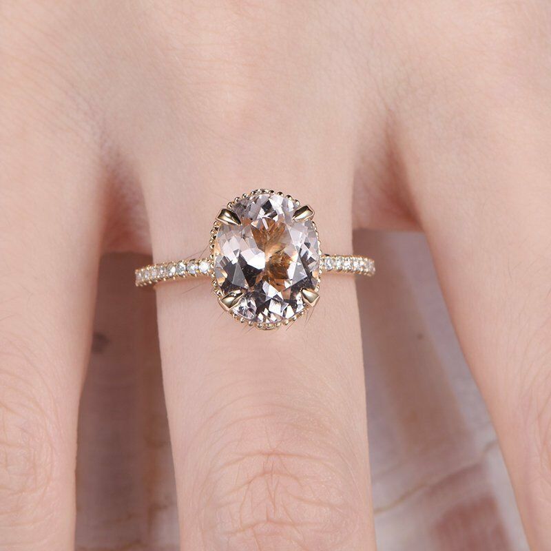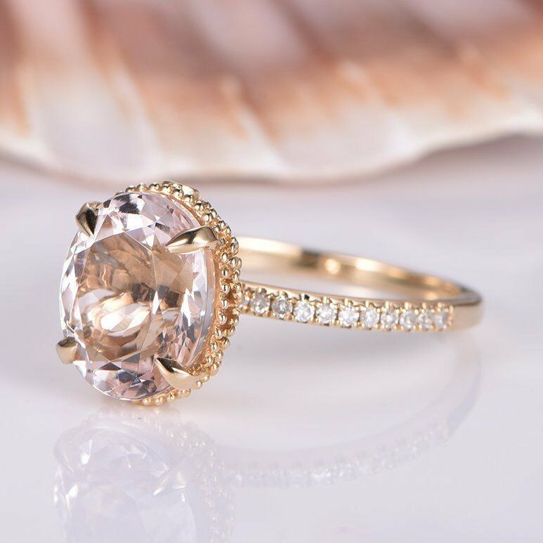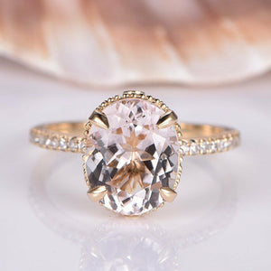 1.7ct Oval Peach Morganite Solitaire Promise Wedding Ring 14k Yellow Gold Finish