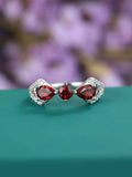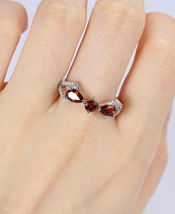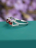 1.7ct Round Cut Red Garnet Engagement Ring 14k White Gold Finish Unique Trilogy