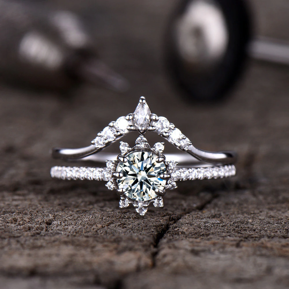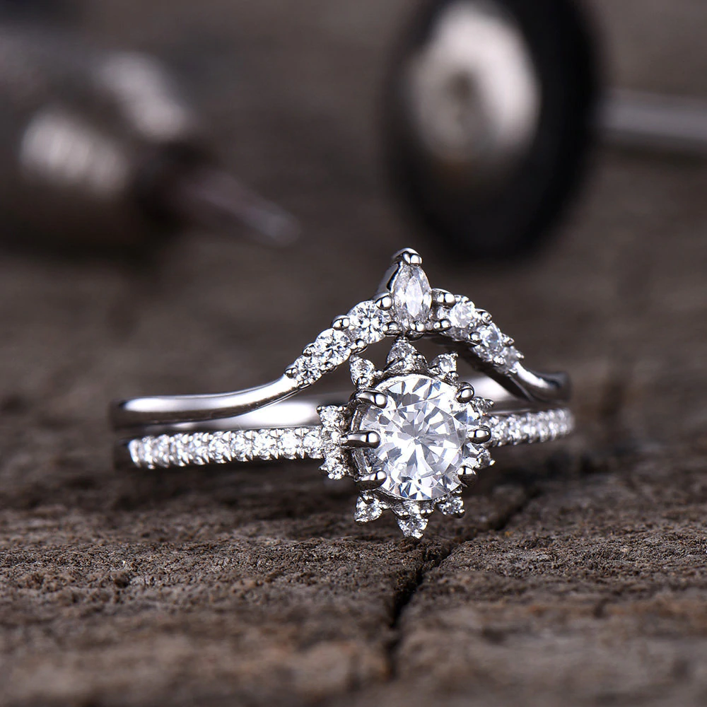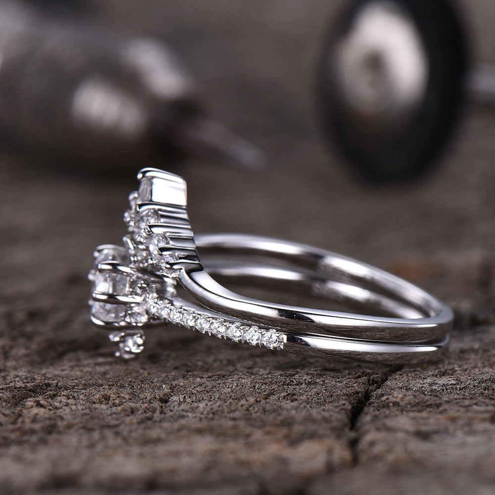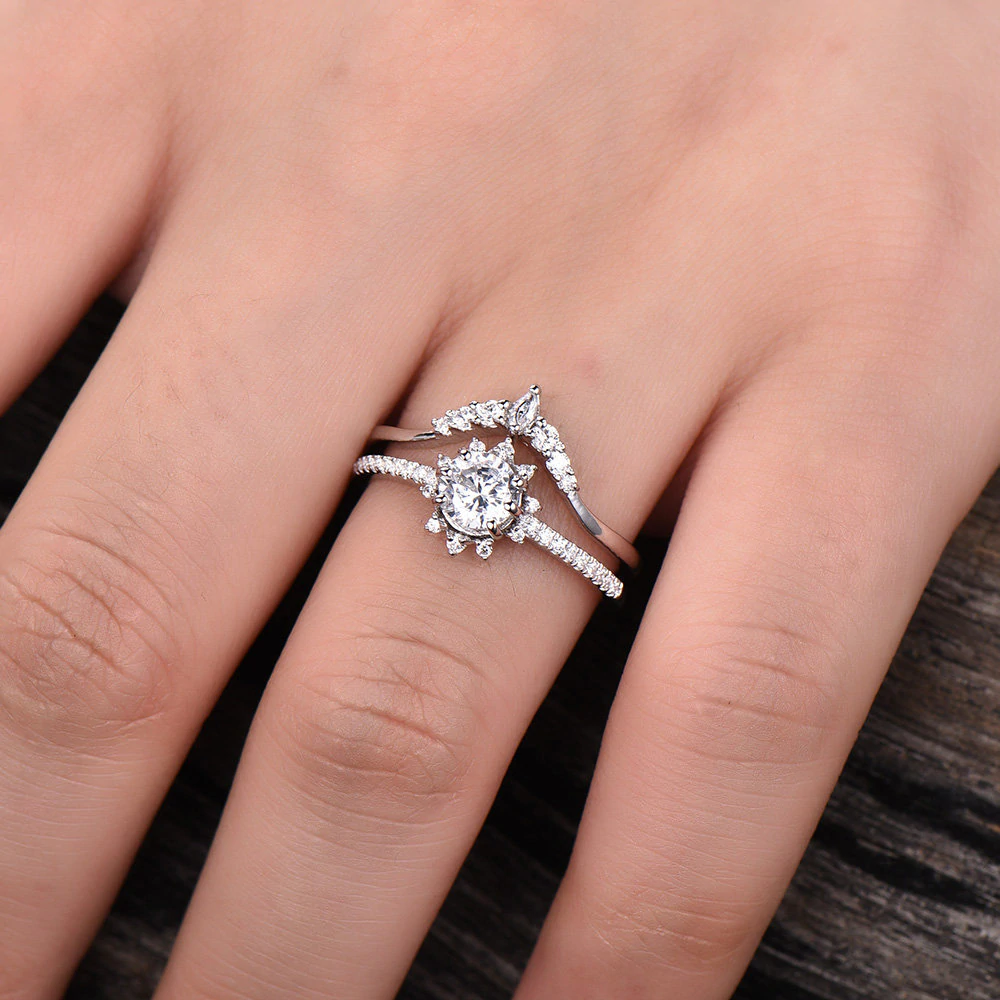 1.8ct Round Cut Diamond Engagement Ring 14k White Gold Finish Curved Bridal Set