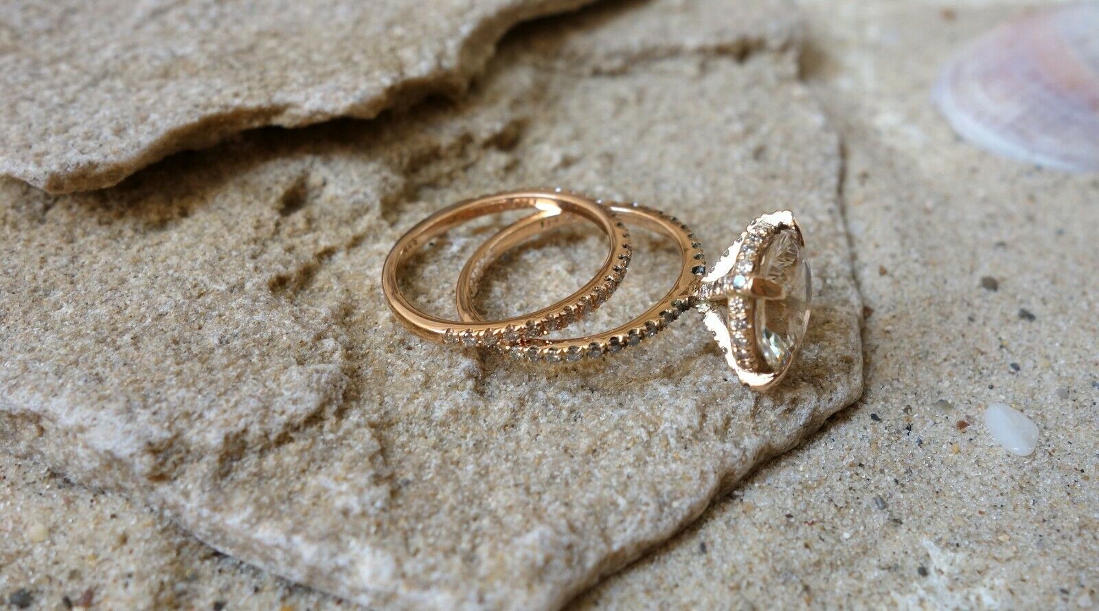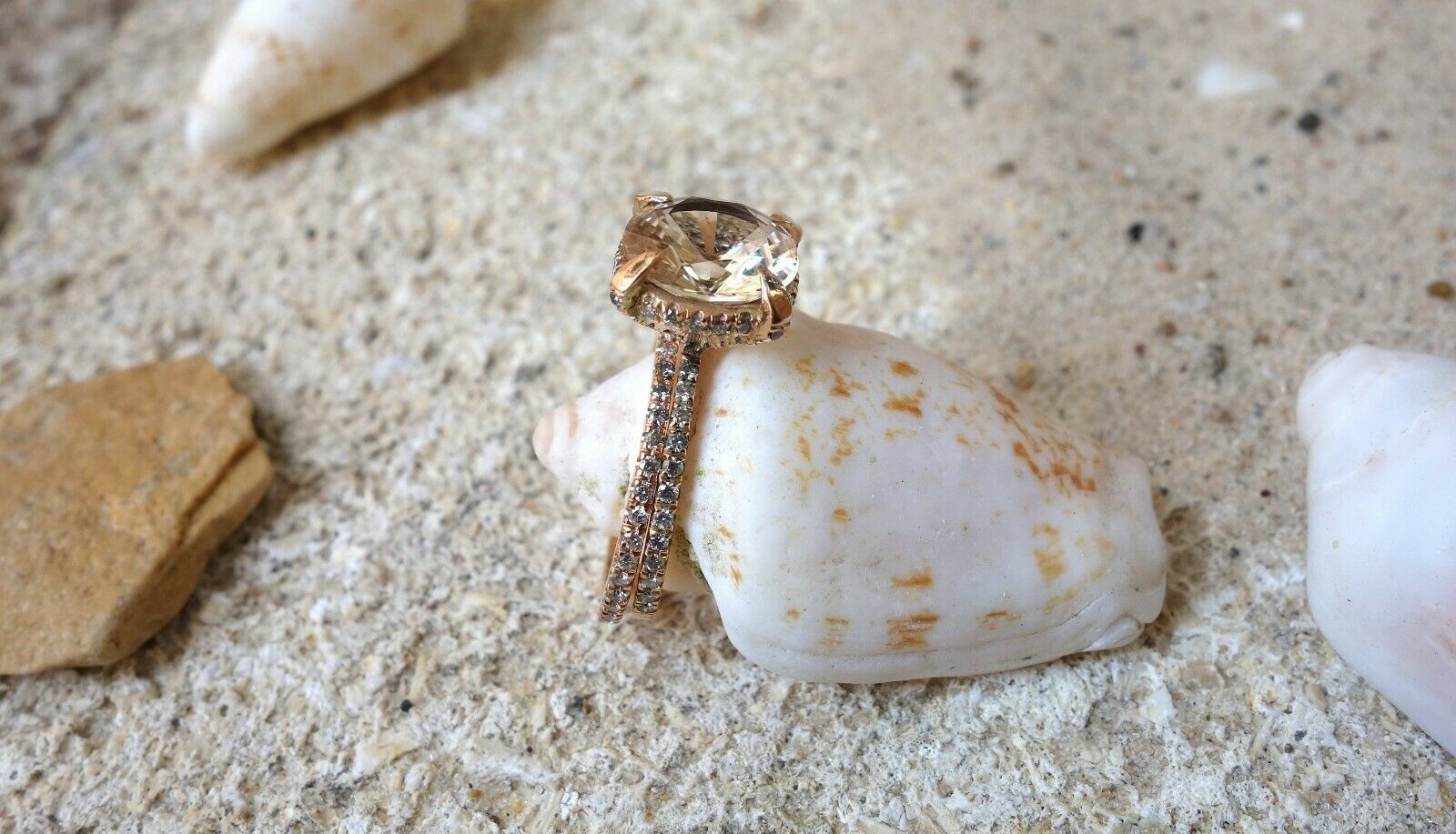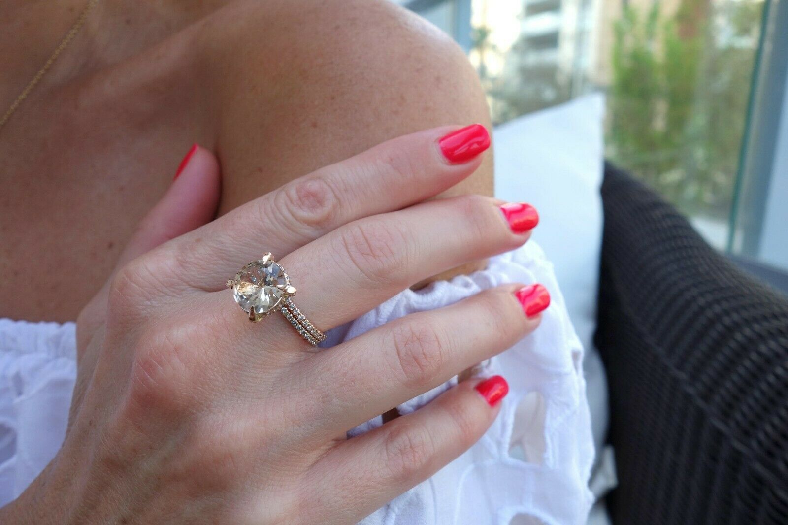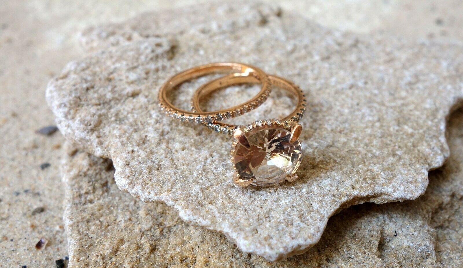 1.8ct Round Cut Peach Morganite Engagement Ring 14k Rose Gold Finish Bridal Set