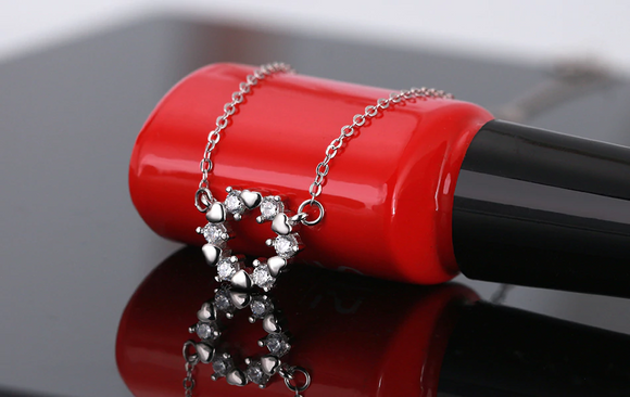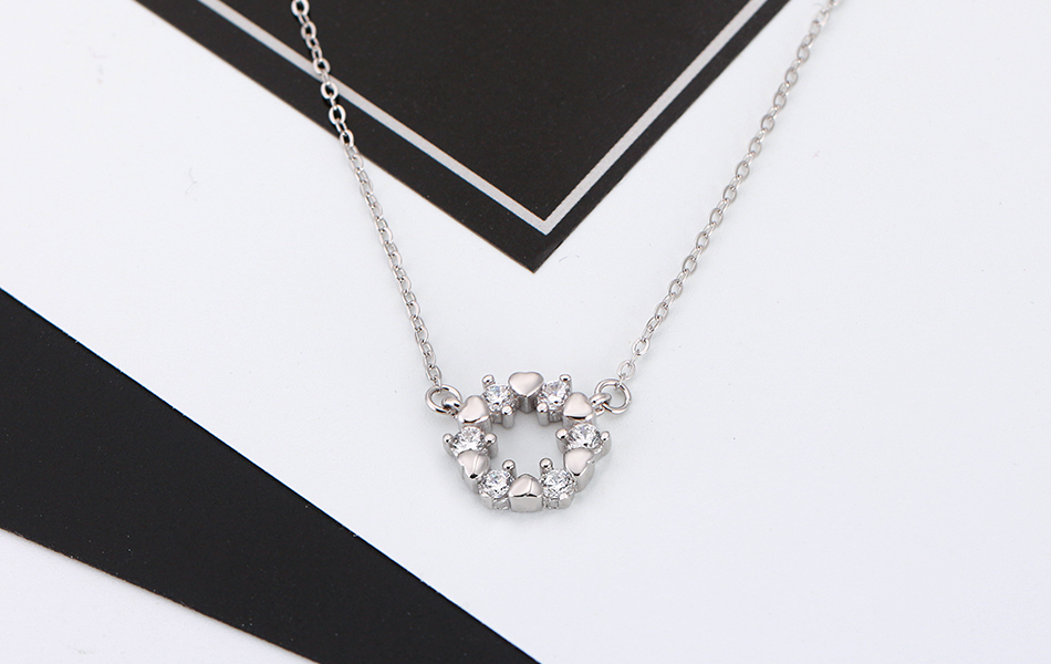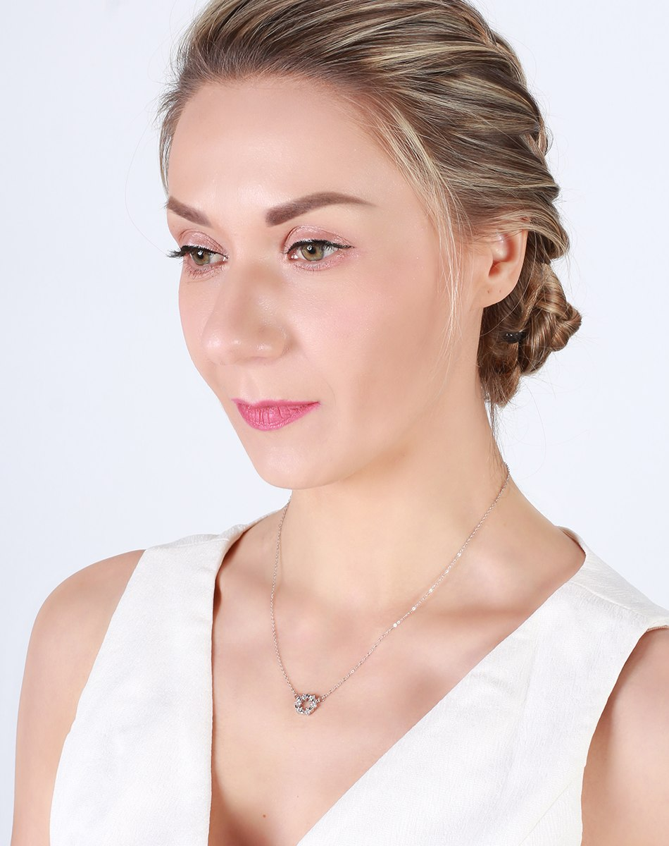 1.8ct Round Diamond Pendant Chain Heart Shape Open Design 14k White Gold Finish