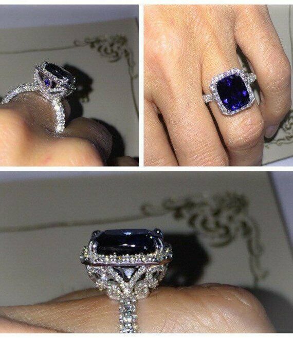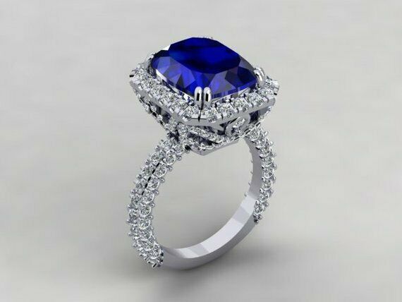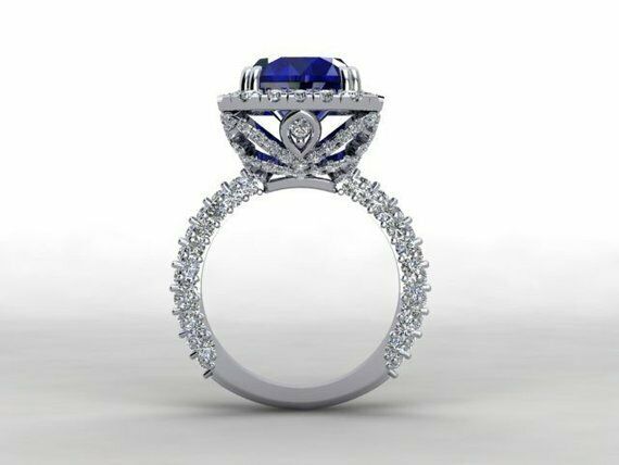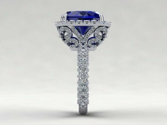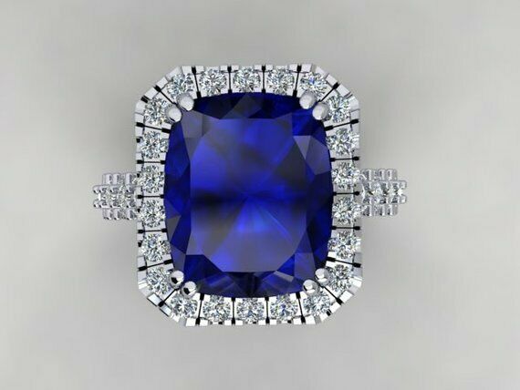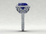 1.9ct Cushion Cut Blue Sapphire Accent Halo Engagement Ring 14k WhiteGold Finish