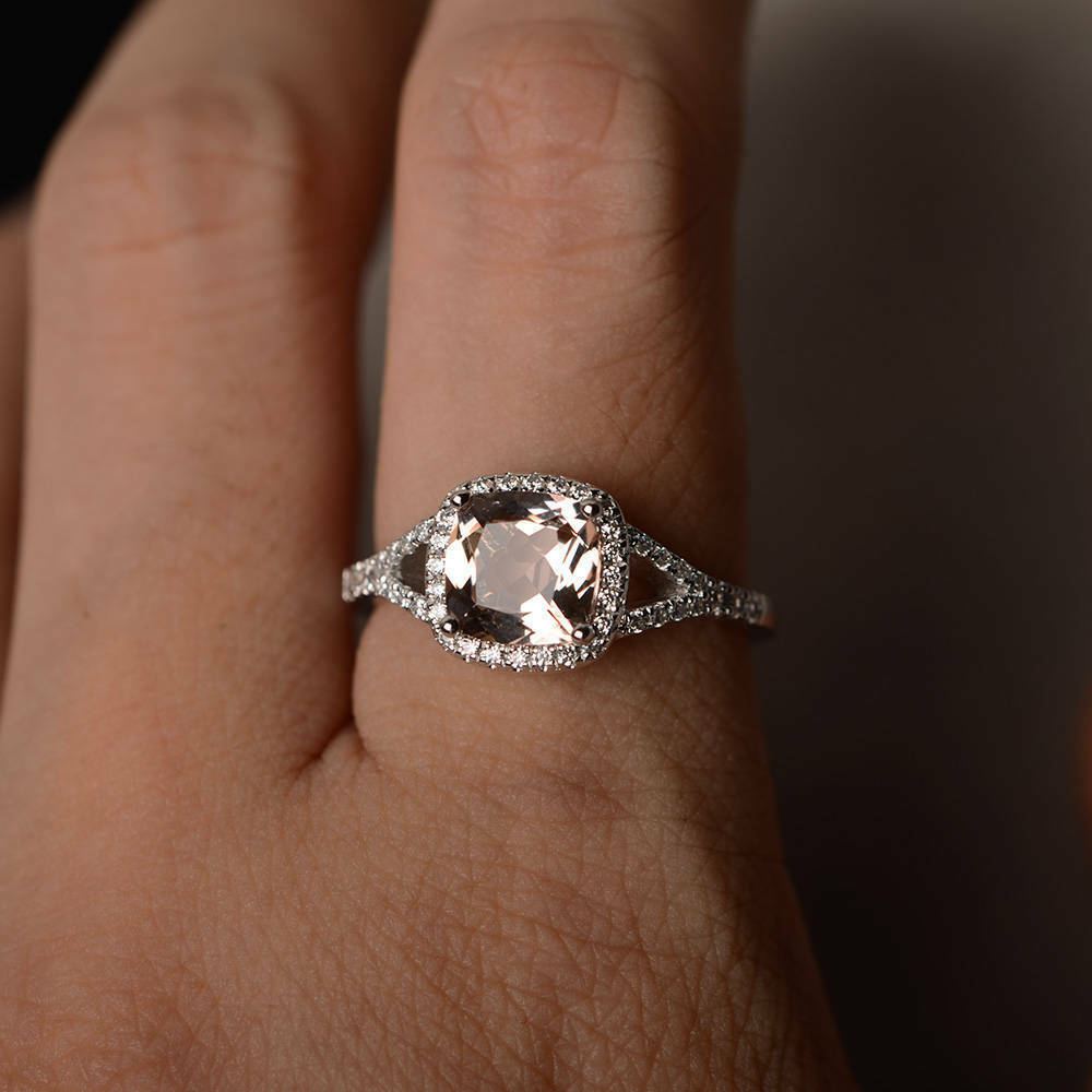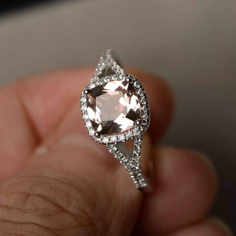 1.9ct Cushion Cut Peach Morganite Engagement Ring 14k WhiteGold Over Split Shank