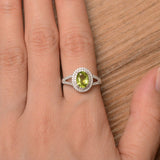 1.9ct Oval Cut Green Peridot Double Halo Engagement Ring 14k White Gold Finish