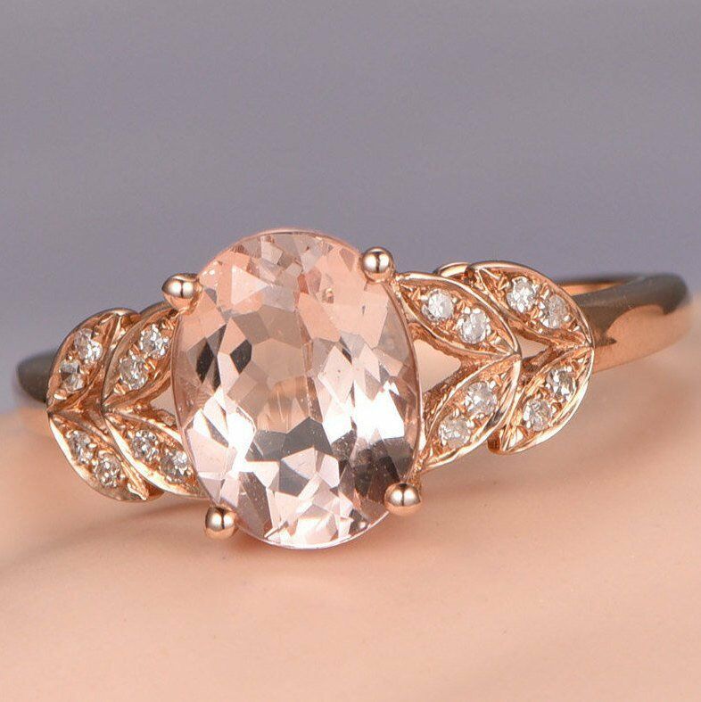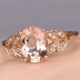 1.9ct Oval Cut Peach Morganite Bridal Halo Engagement Ring 14k Rose Gold Finish