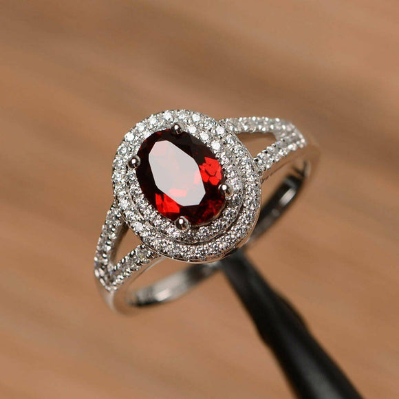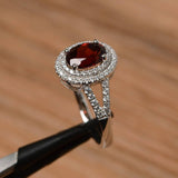 1.9ct Oval Cut Red Garnet Halo Split Shank Engagement Ring 14k White Gold Finish