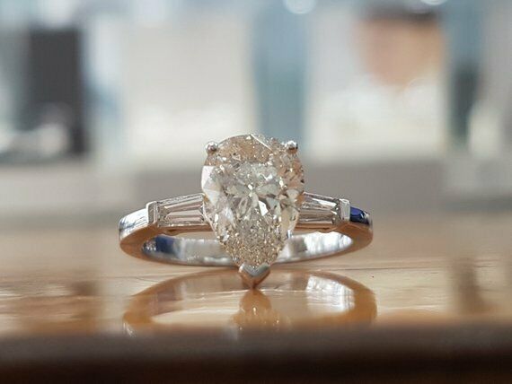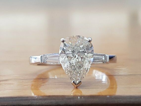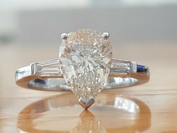1.9ct Pear Cut VVS1 Diamond Three Stone Engagement Ring 14k White Gold Finish