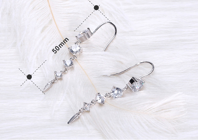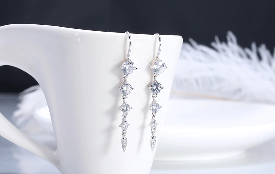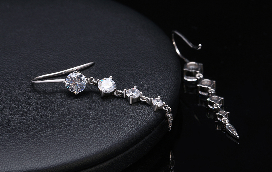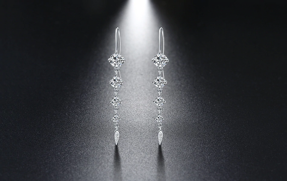 1.9ct Round Cut Diamond Trendy Women Long Dangle Earrings 14k White Gold Finish
