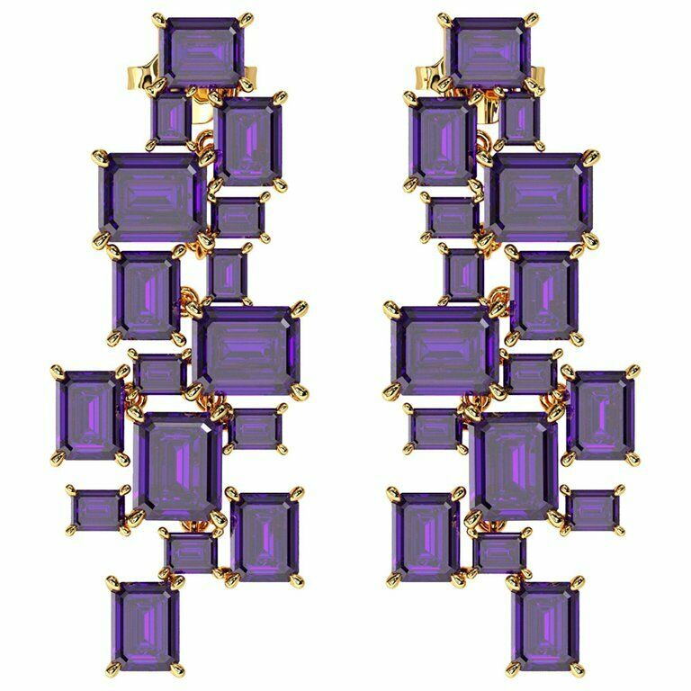 10ct Emerald Cut Purple Amethyst Cocktail Chandelier Drop Earrings 14k Yellow Gold Finish