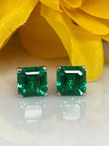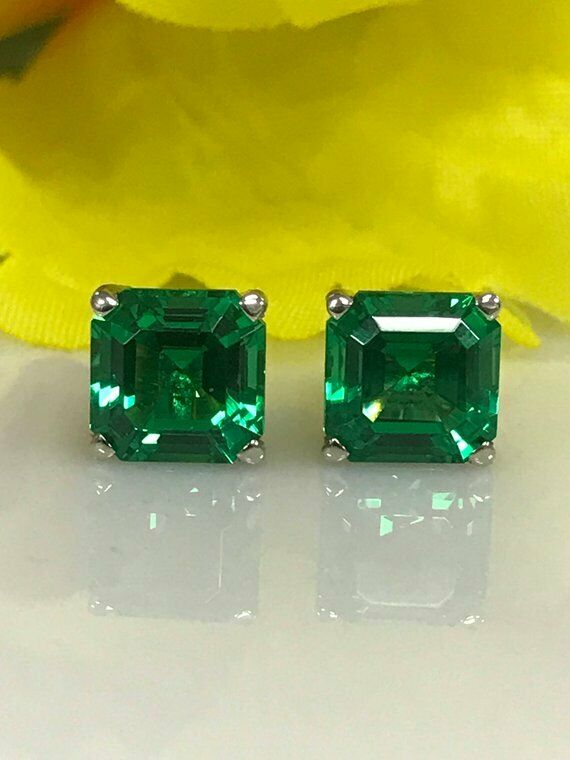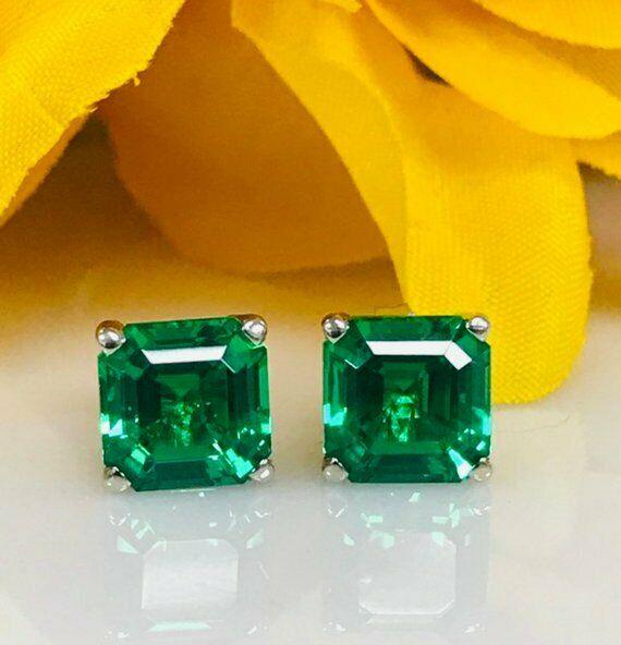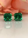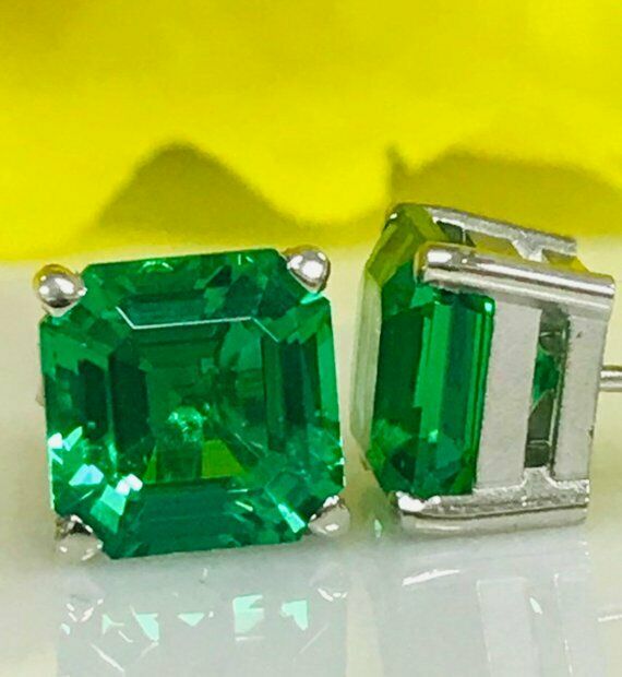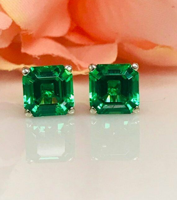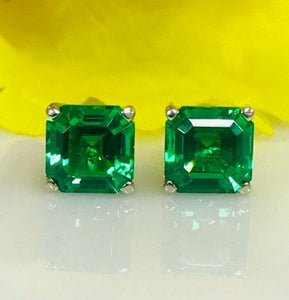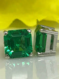 1ct Asscher Cut Green Emerald Solitaire Stud Women Earrings 14k WhiteGold Finish