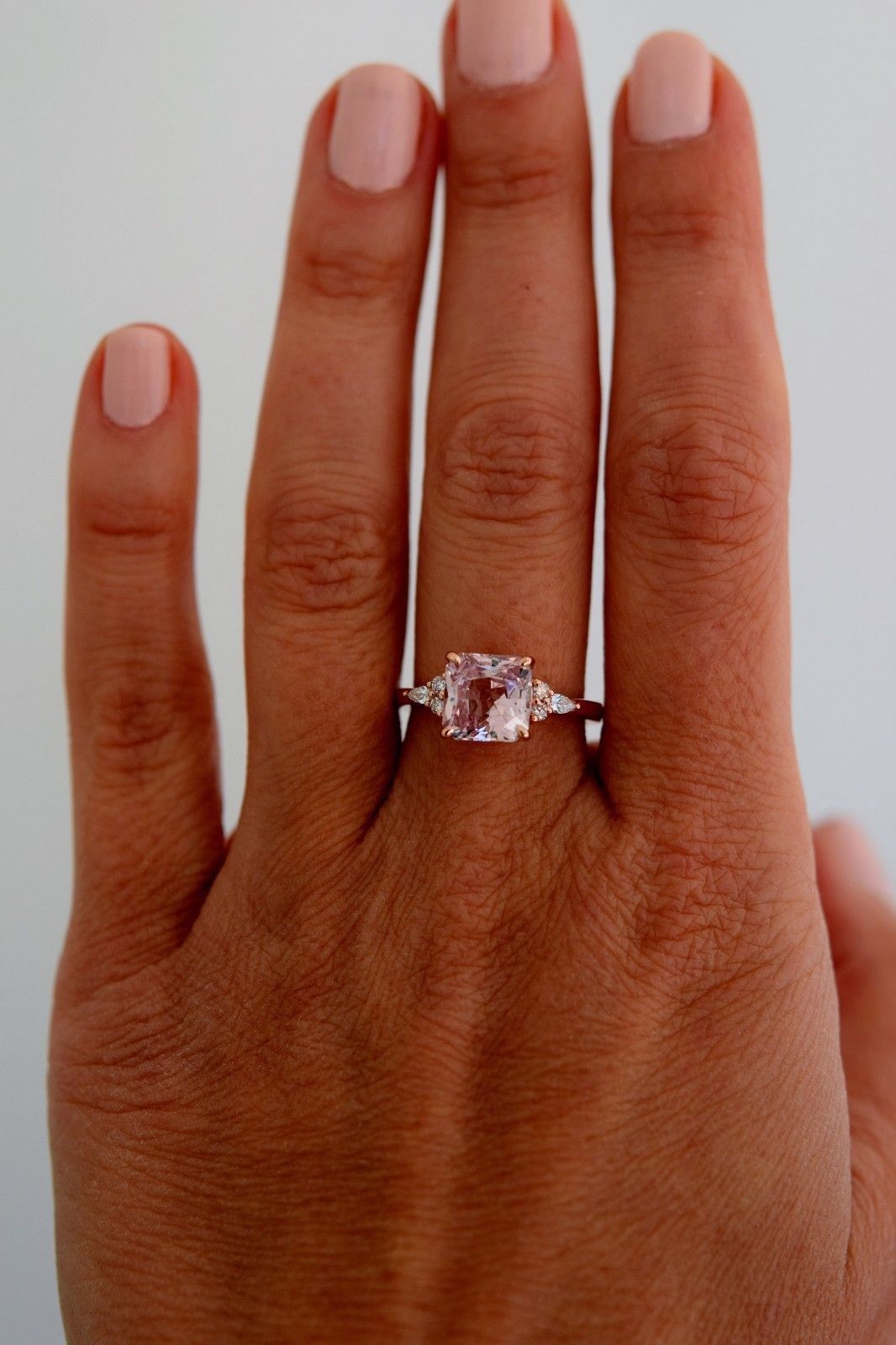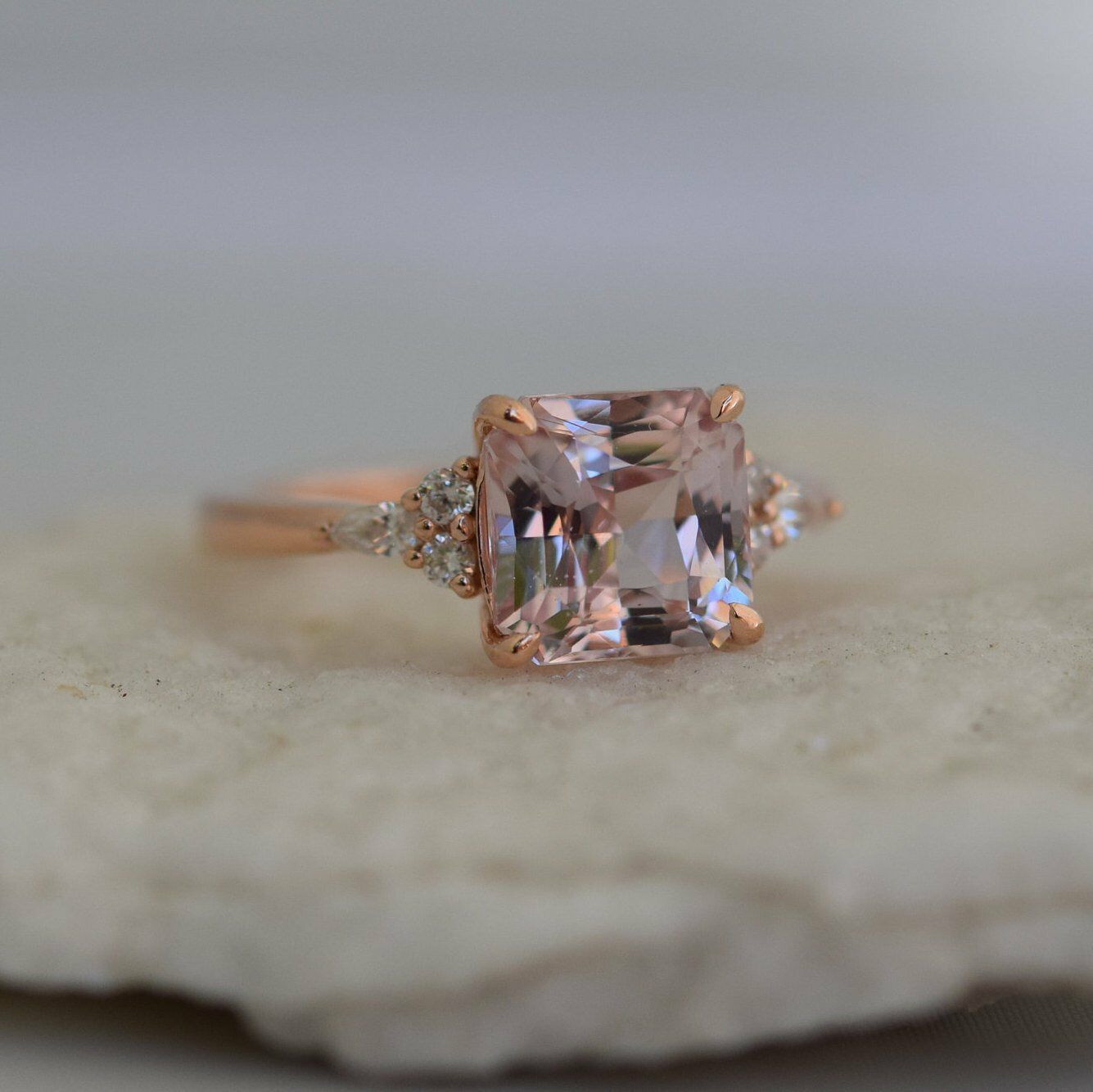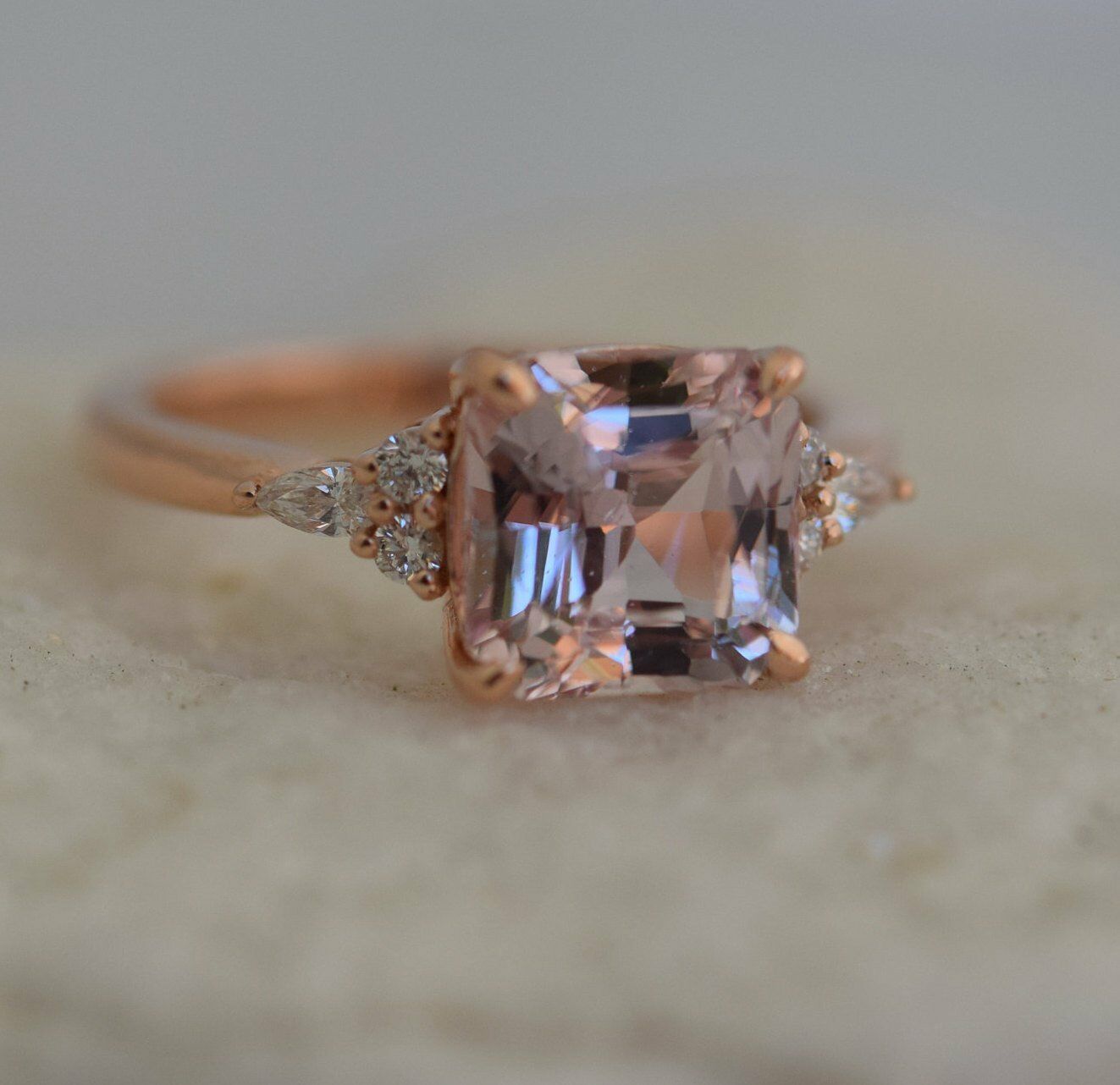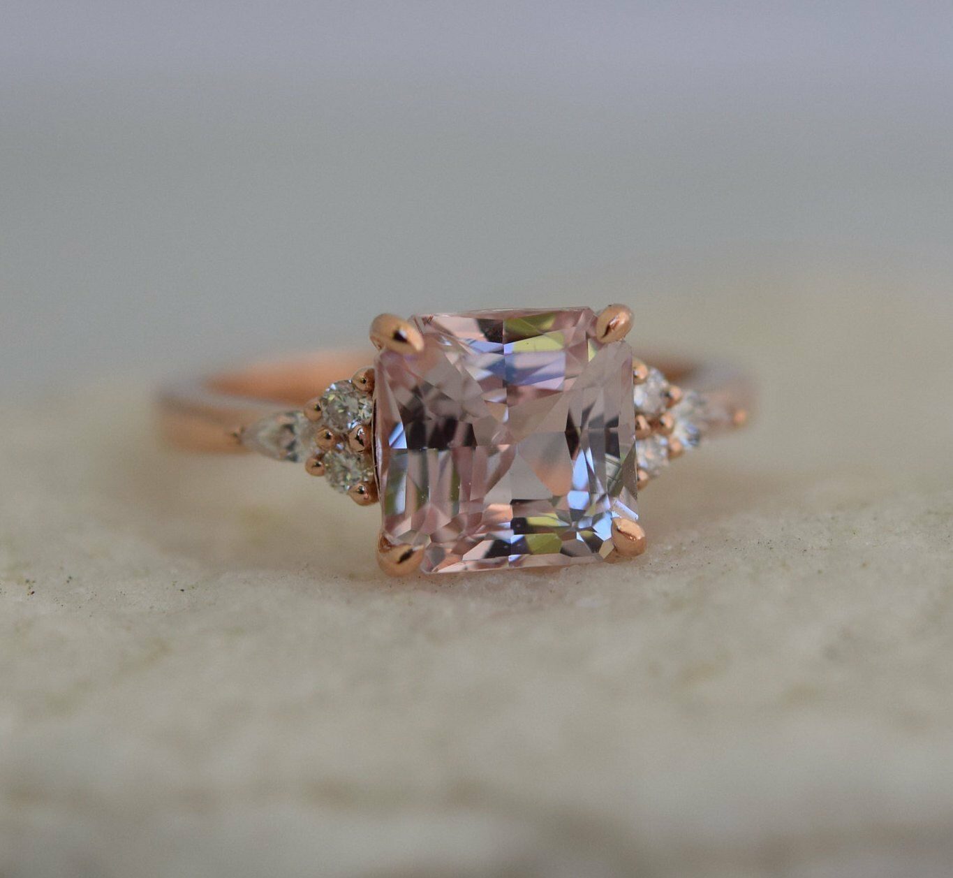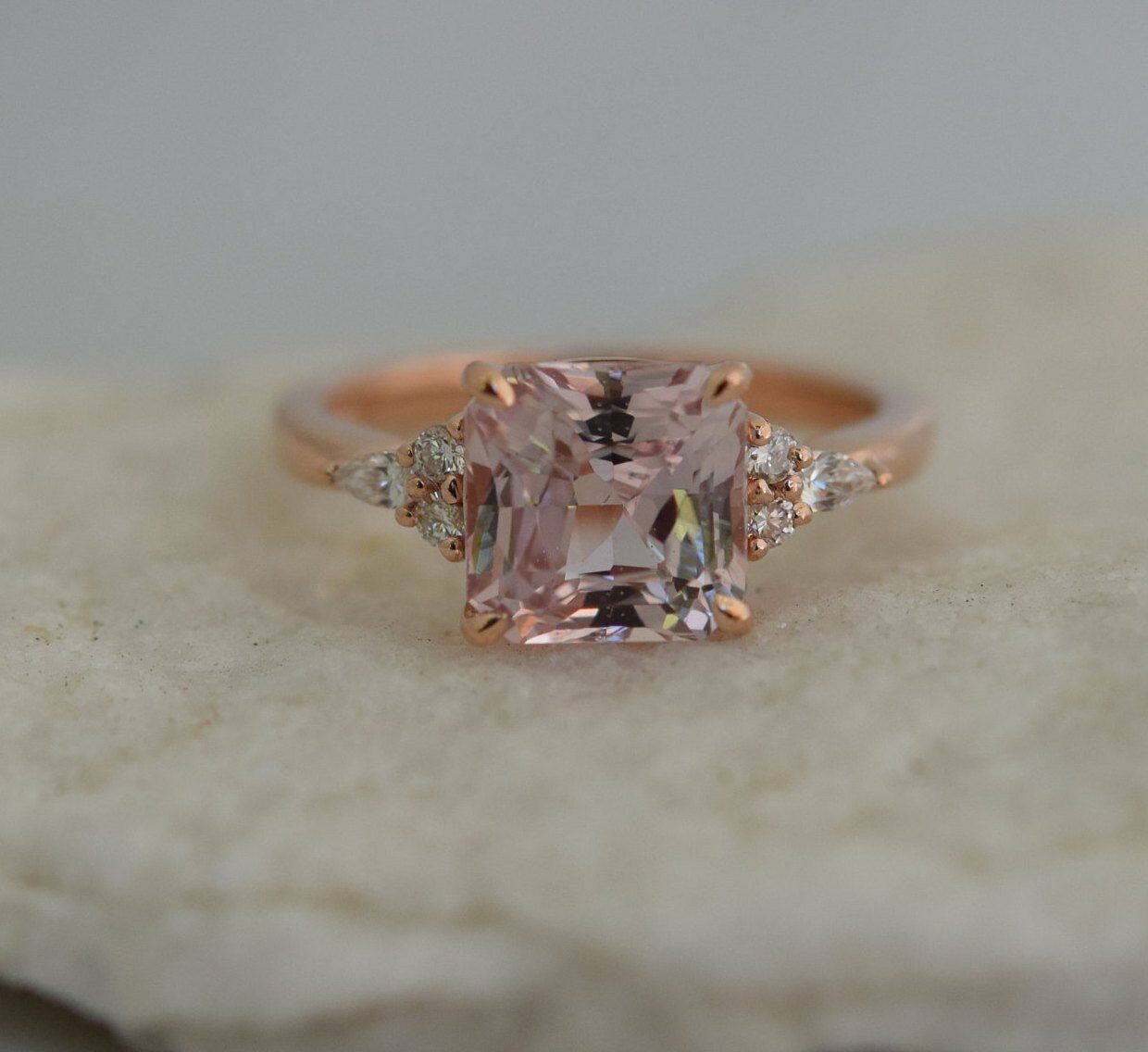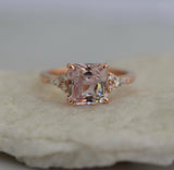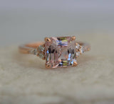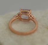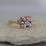 1ct Asscher Cut Peach Morganite Unique Trendy Engagement Ring 14k Rose Gold Over