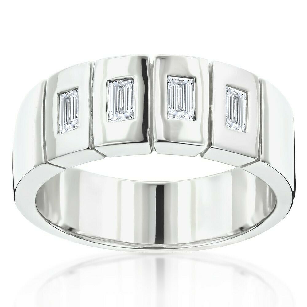 1Ct Baguette Cut Diamond Elegant Men Wedding Band Ring 14K White Gold Finish