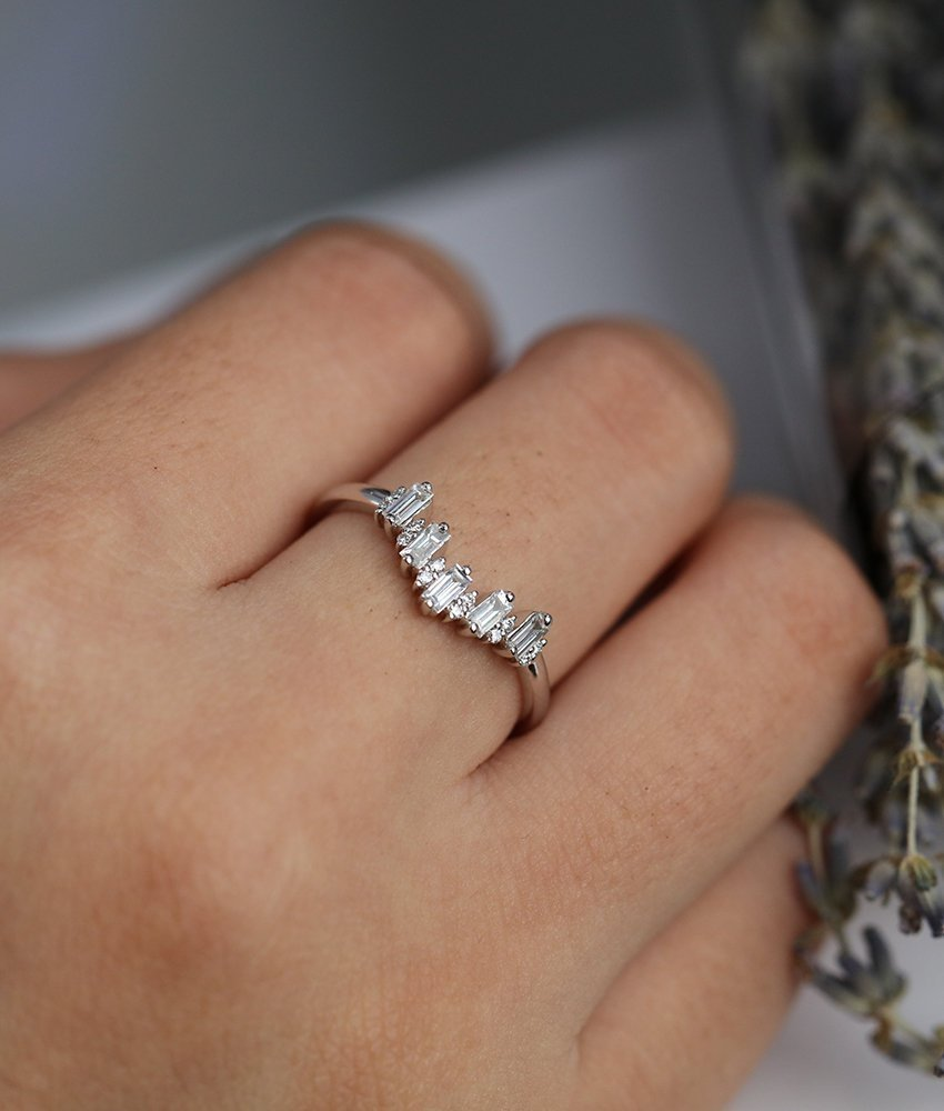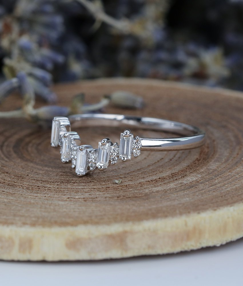 1ct Baguette Cut Diamond Wedding Ring Band 14k WhiteGold Finish 5 Stone Eternity