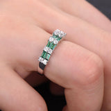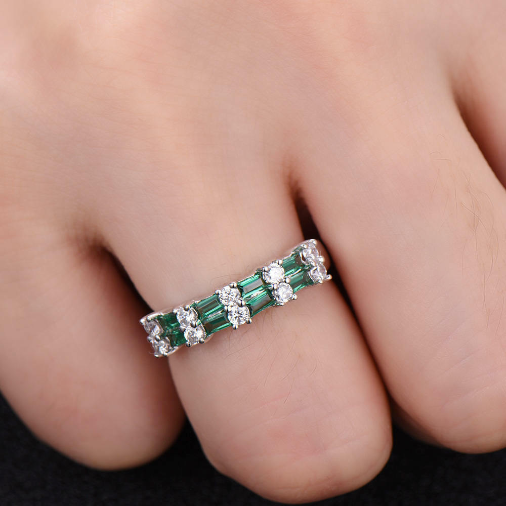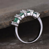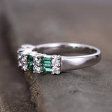 1ct Baguette Cut Green Emerald Fancy Design Engagement Ring 14k WhiteGold Finish