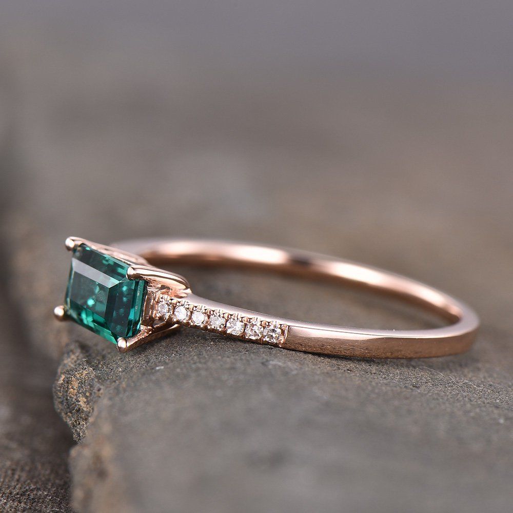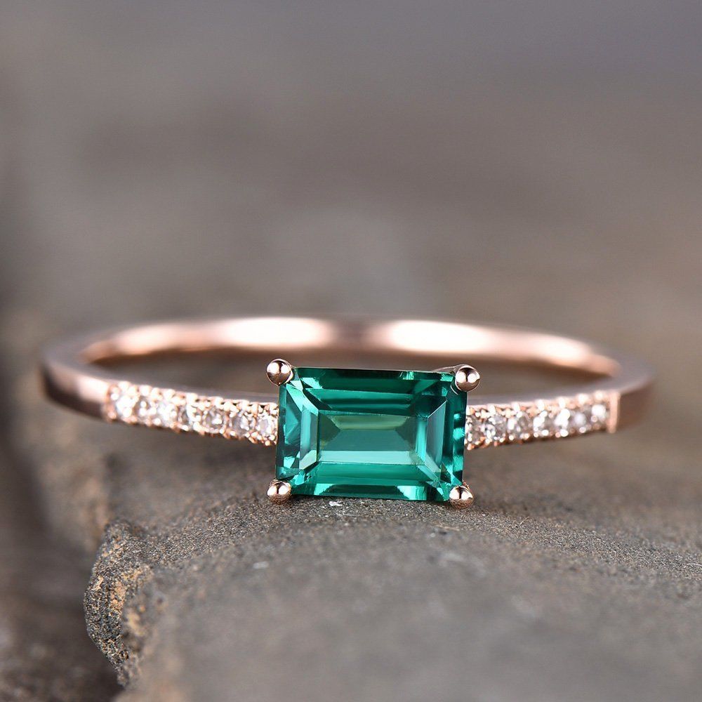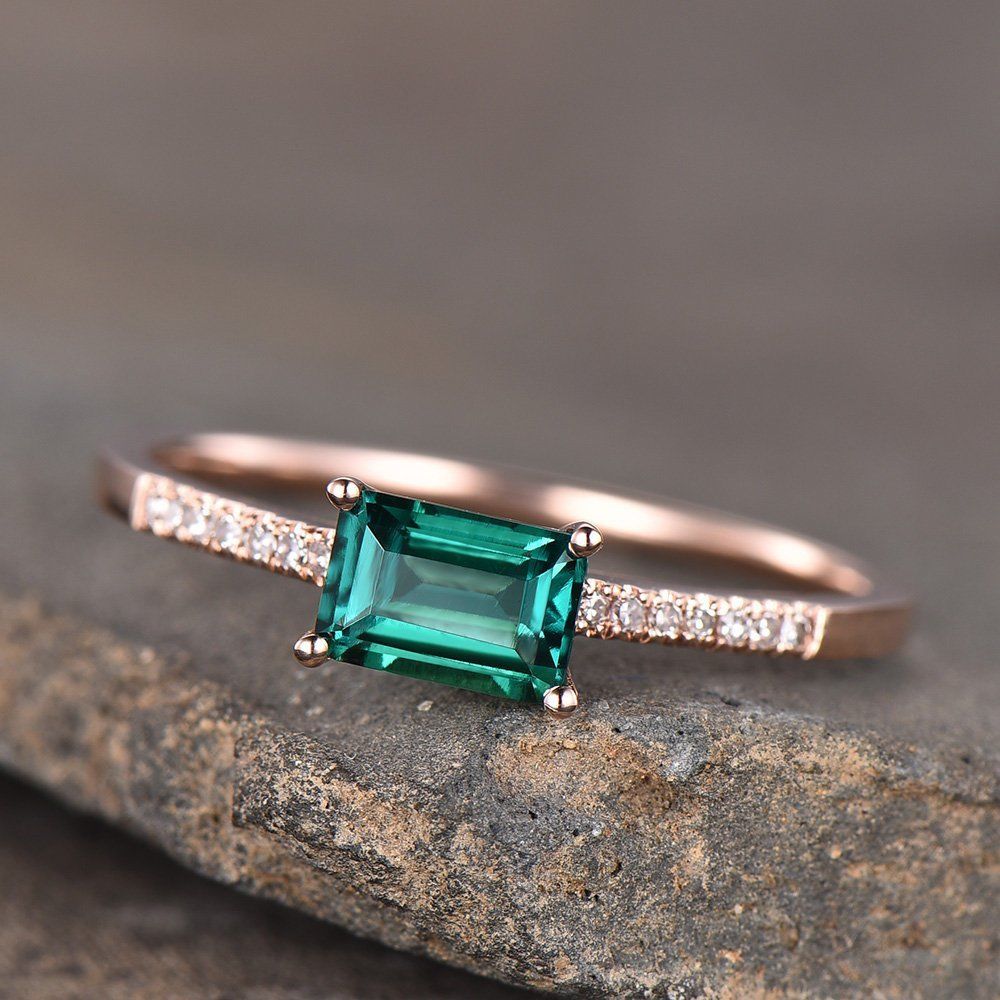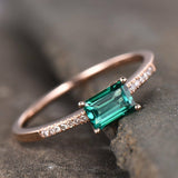 1ct Baguette Cut Green Emerald Solitaire Engagement Ring 14k Rose Gold Finish